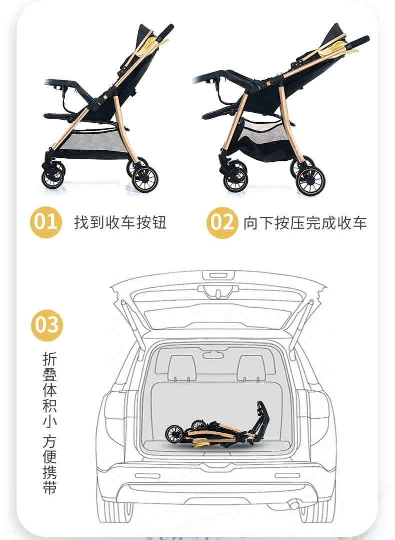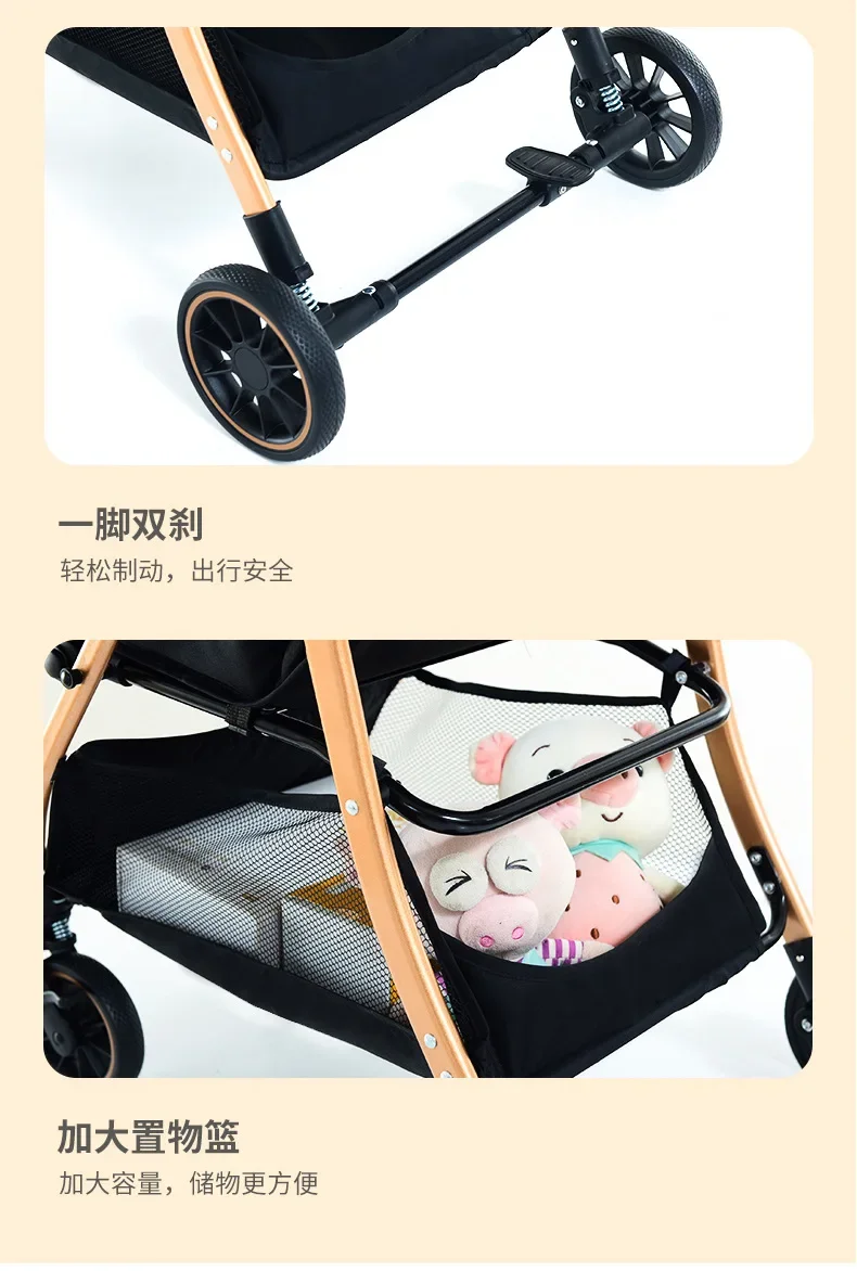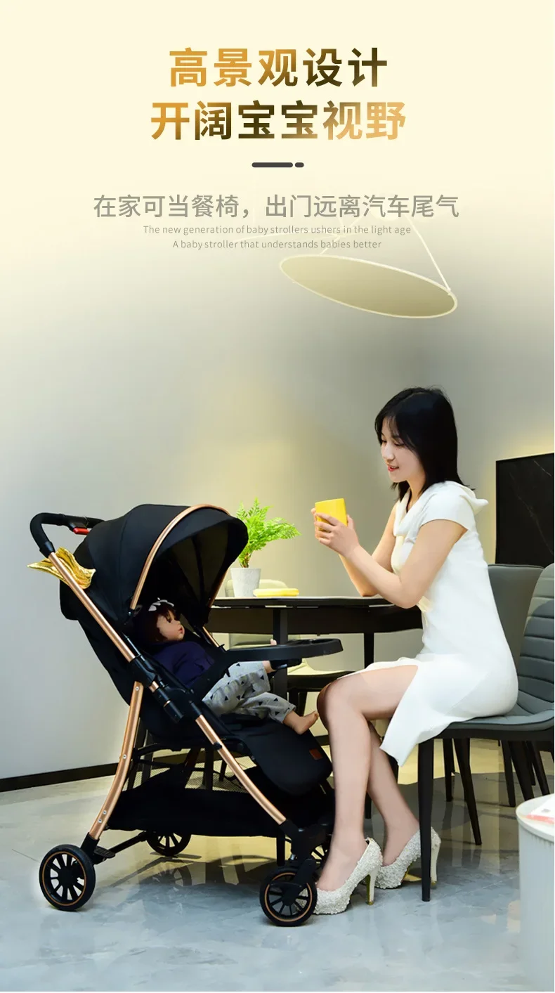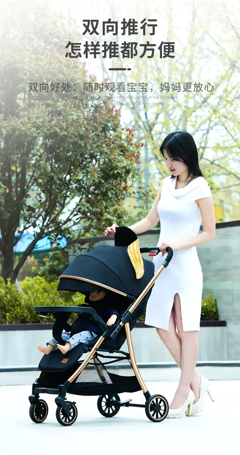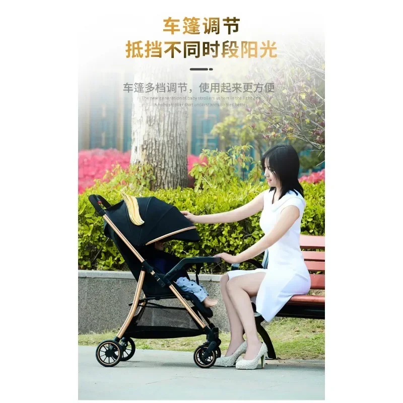 2025 Puede sentarse o acostarse, vista alta bidireccional, plegado con un solo botón, artefacto para caminar de cuatro ruedas para niños, carrito portátil