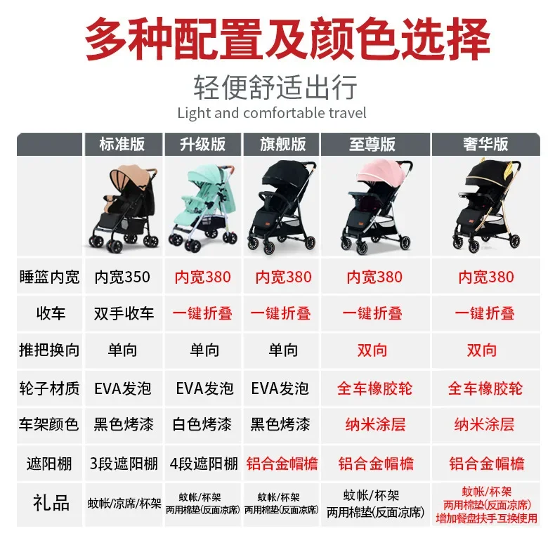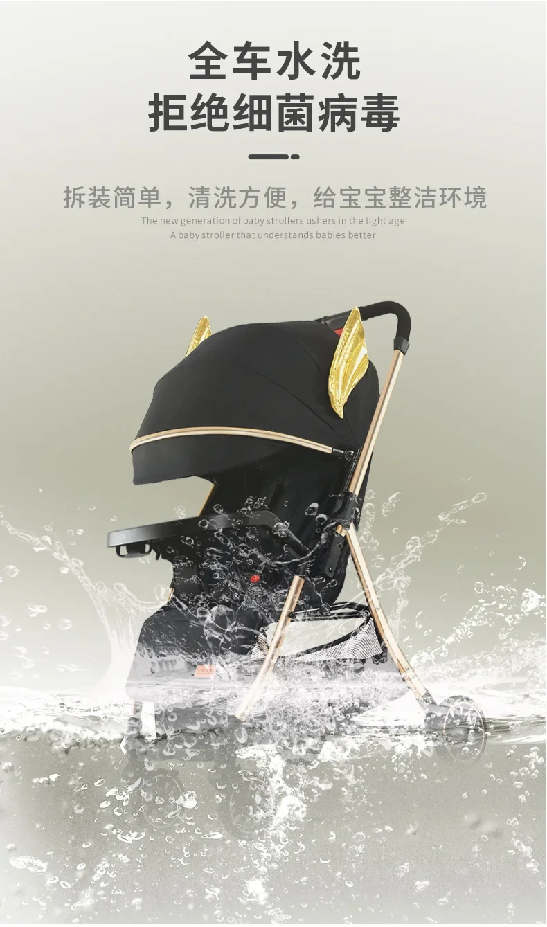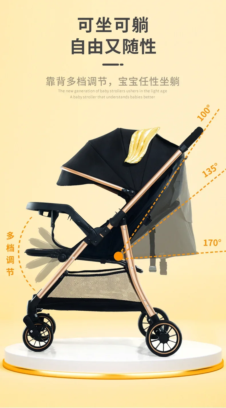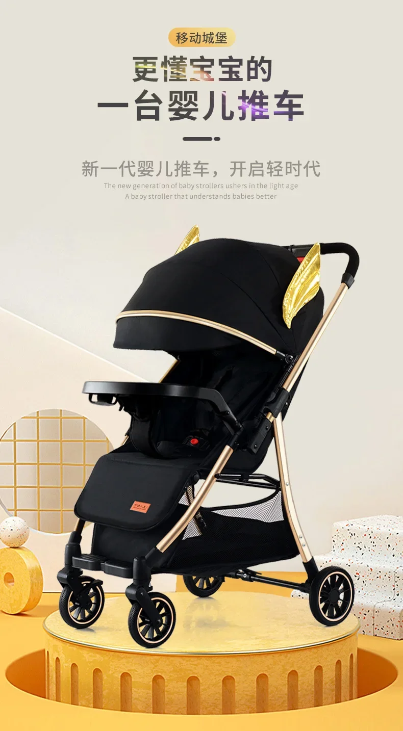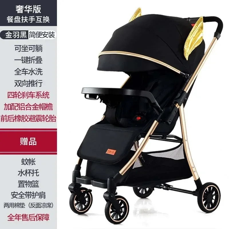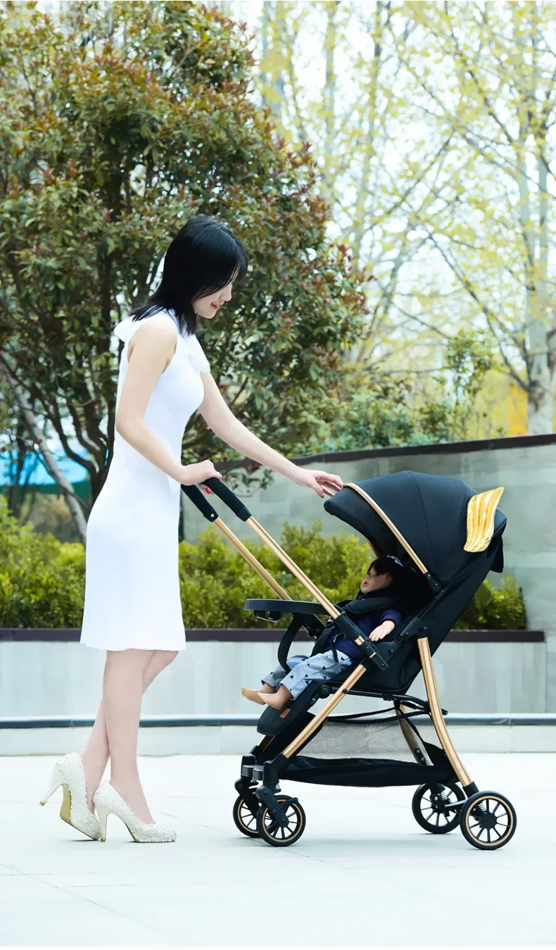Comprar 2025 Puede sentarse o acostarse, vista alta bidireccional, plegado con un solo botón, artefacto para caminar de cuatro ruedas para niños, carrito portátil