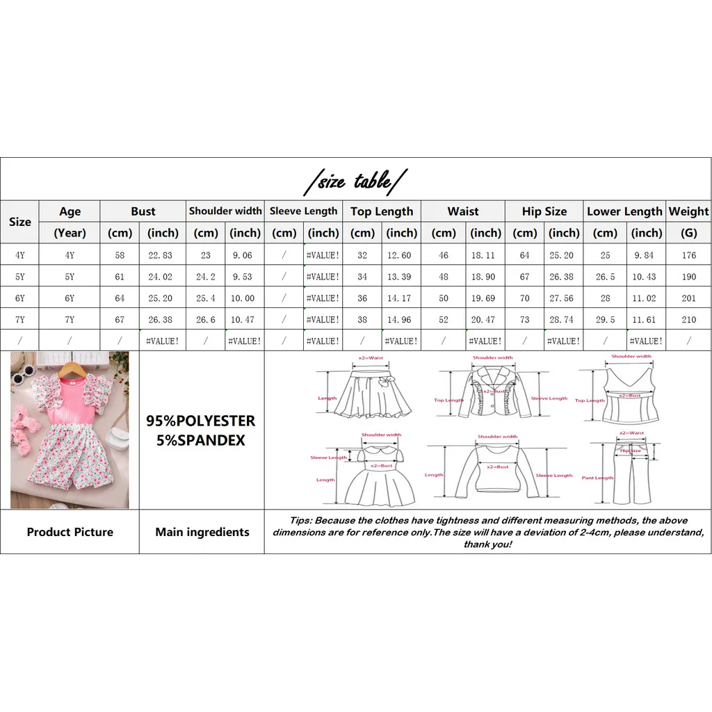 Comprar 2025 traje rosa para niñas, camisa Floral bonita informal de verano + Pantalones cortos, conjunto de 2 uds., ropa de algodón para niñas pequeñas de 3, 4, 5, 6, 7 años