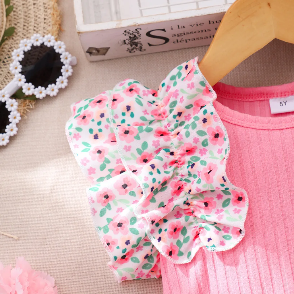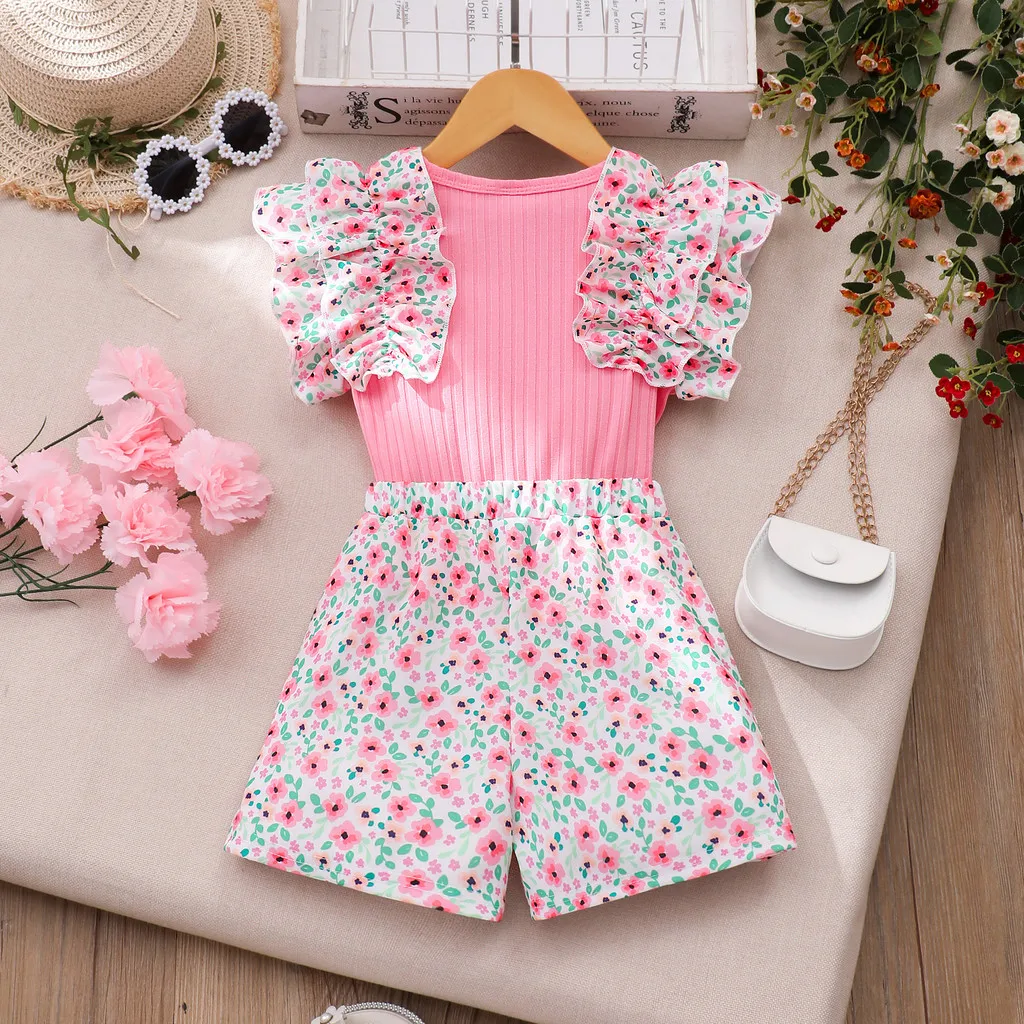 Comprar 2025 traje rosa para niñas, camisa Floral bonita informal de verano + Pantalones cortos, conjunto de 2 uds., ropa de algodón para niñas pequeñas de 3, 4, 5, 6, 7 años