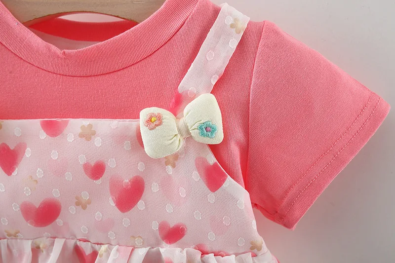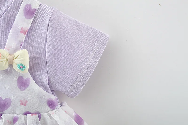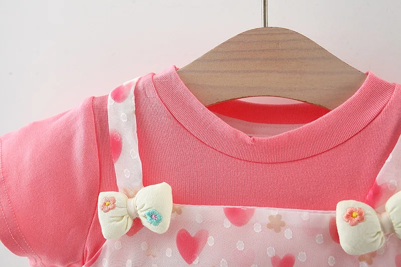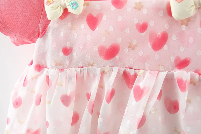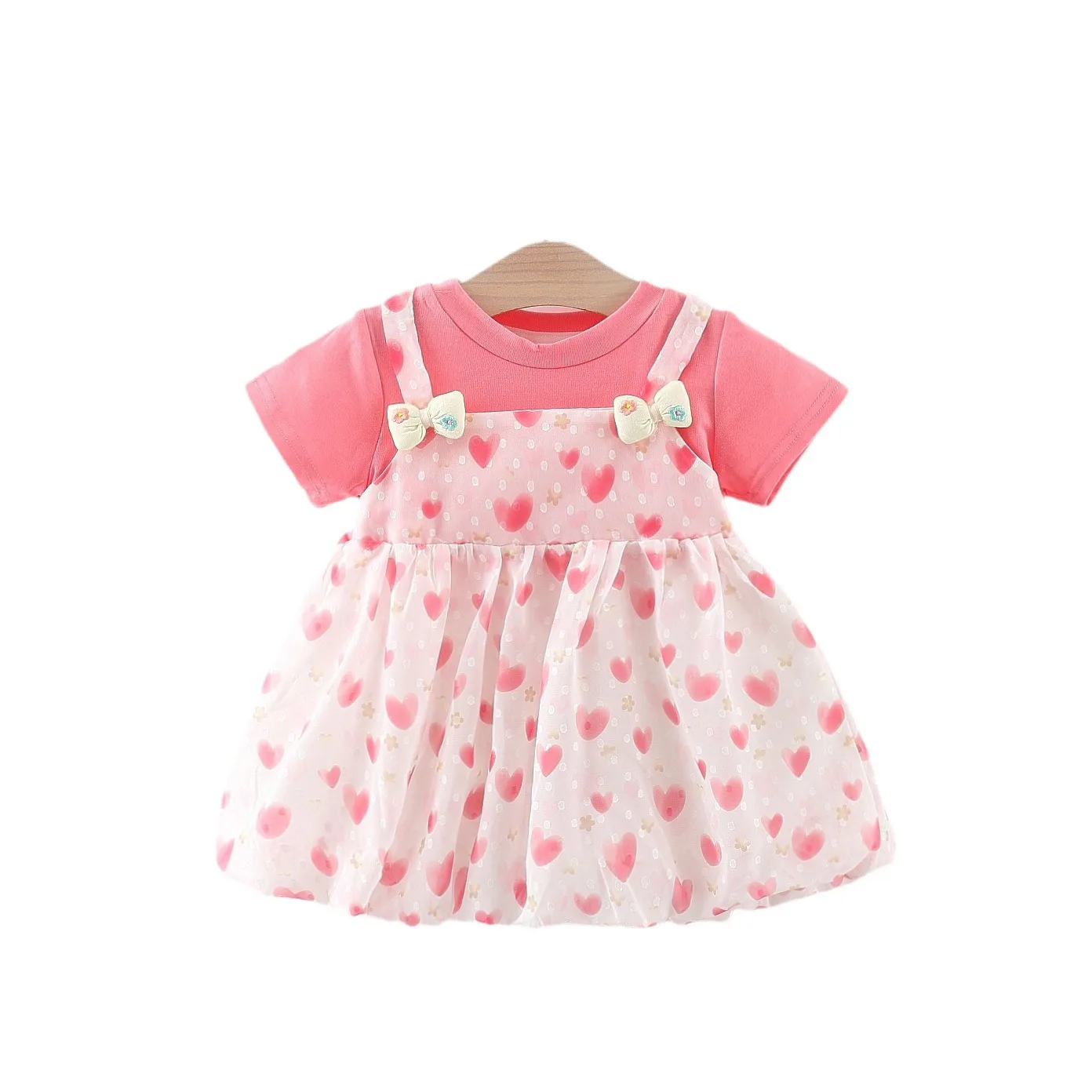 2025 vestidos infantiles para niñas, ropa de Boutique, moda coreana, bonito lazo de princesa, vestido de manga corta de malla de algodón para niños pequeños B120