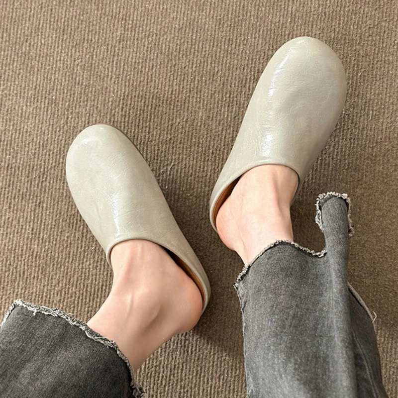 Comprar 2025 zapatillas de plataforma a la moda para mujer, suela gruesa, zapatos de primavera y verano, estilo sin cordones, mulas de punta cerrada de PU suave, chanclas de calle para mujer