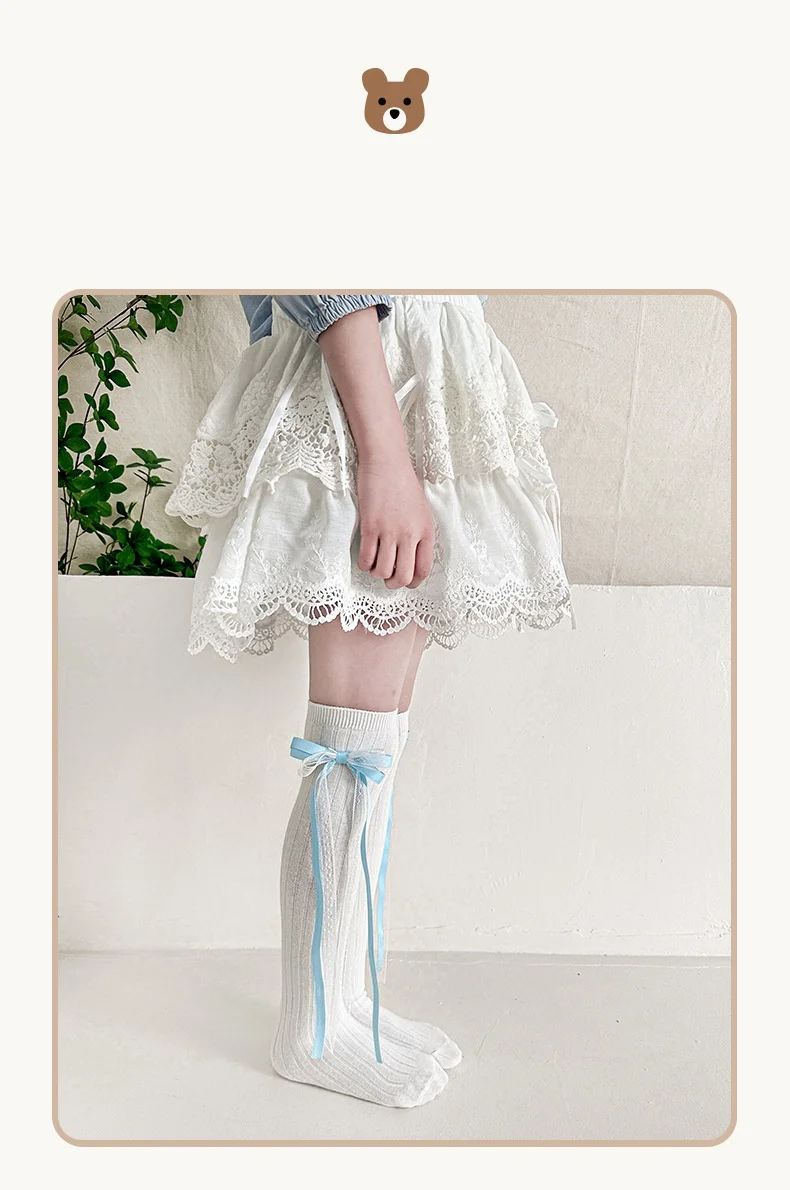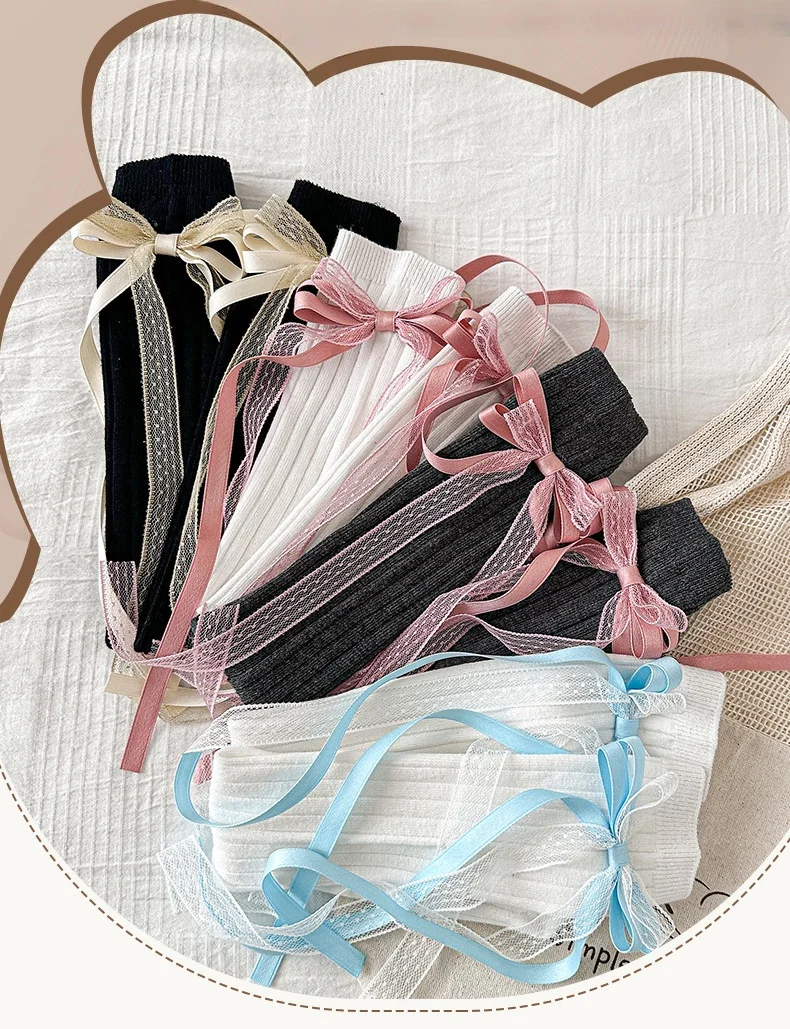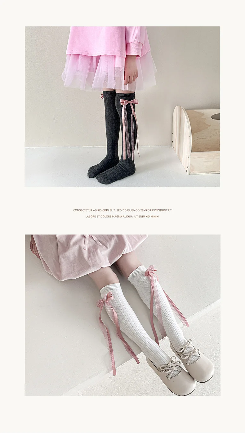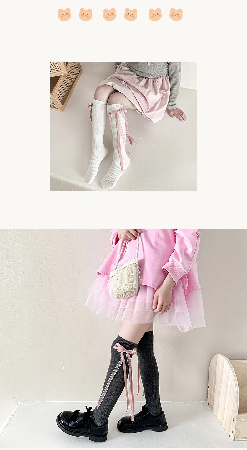 1. Encantador diseño de borla de lazo largo: el elegante lazo largo (con ribete de borla) agrega detalles dulces y llamativos, lo que hace que los calcetines sean perfectos para combinar vestidos o lindos atuendos diarios.