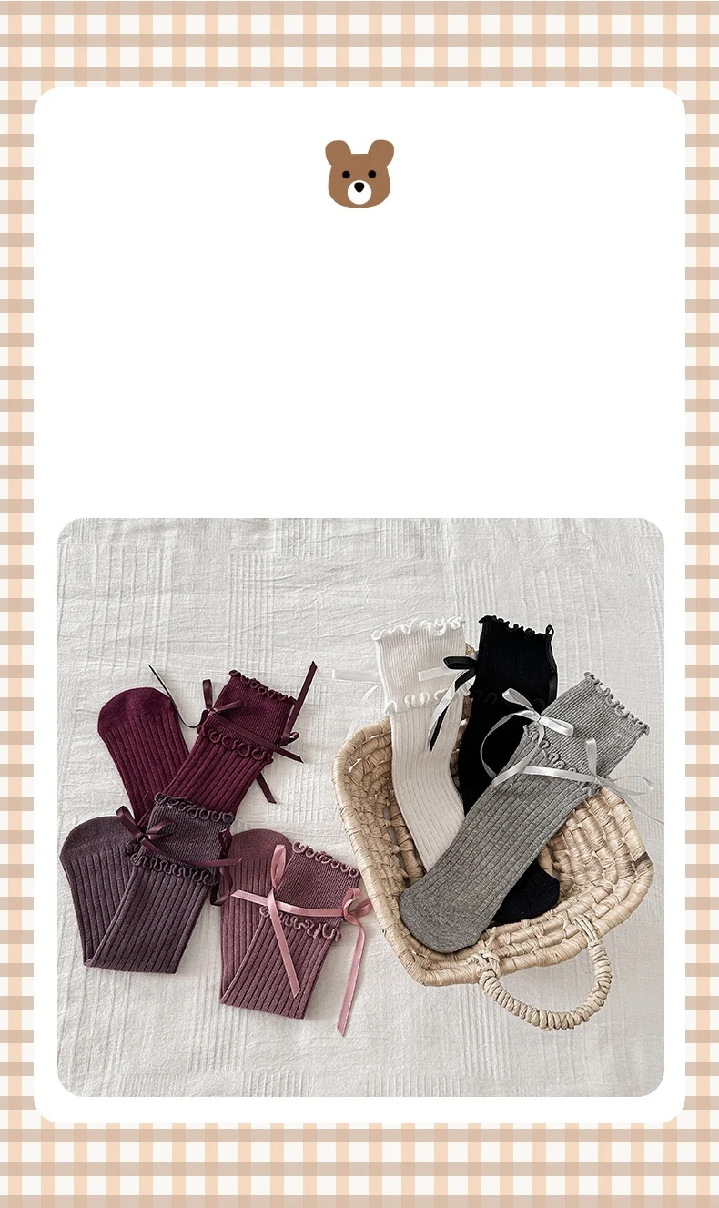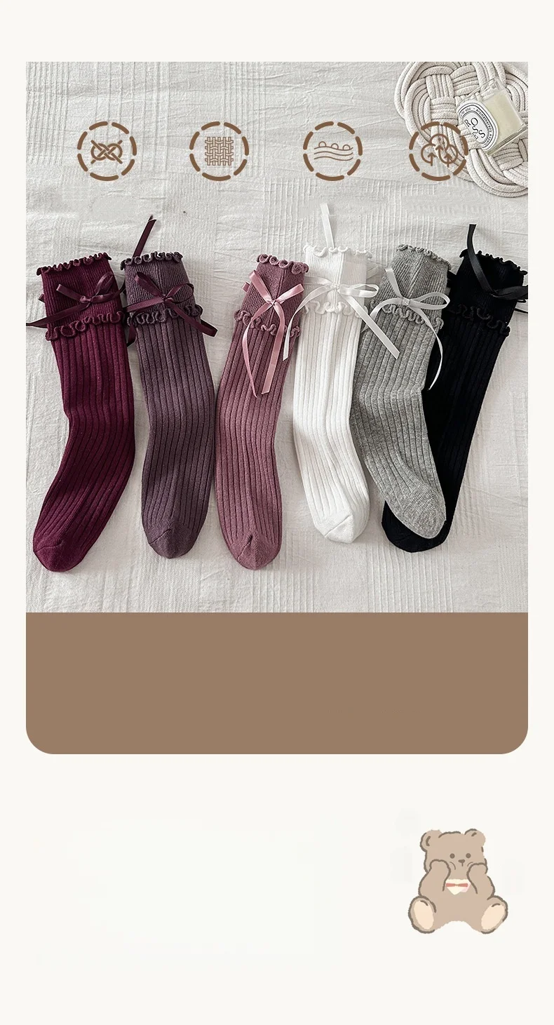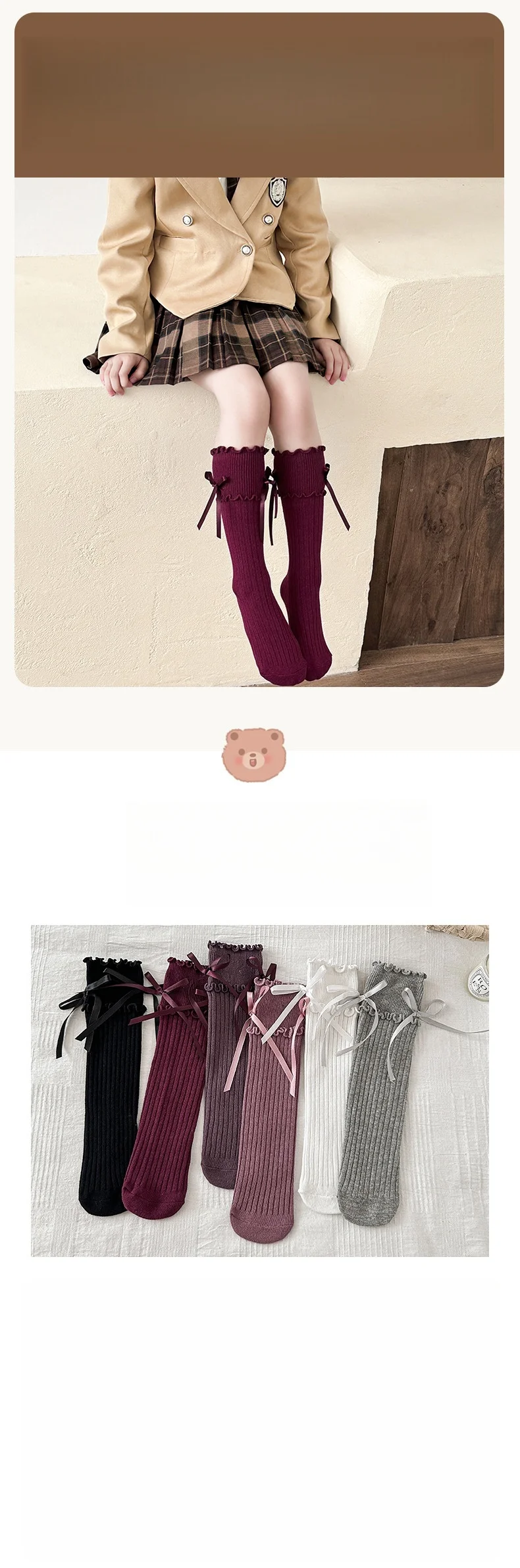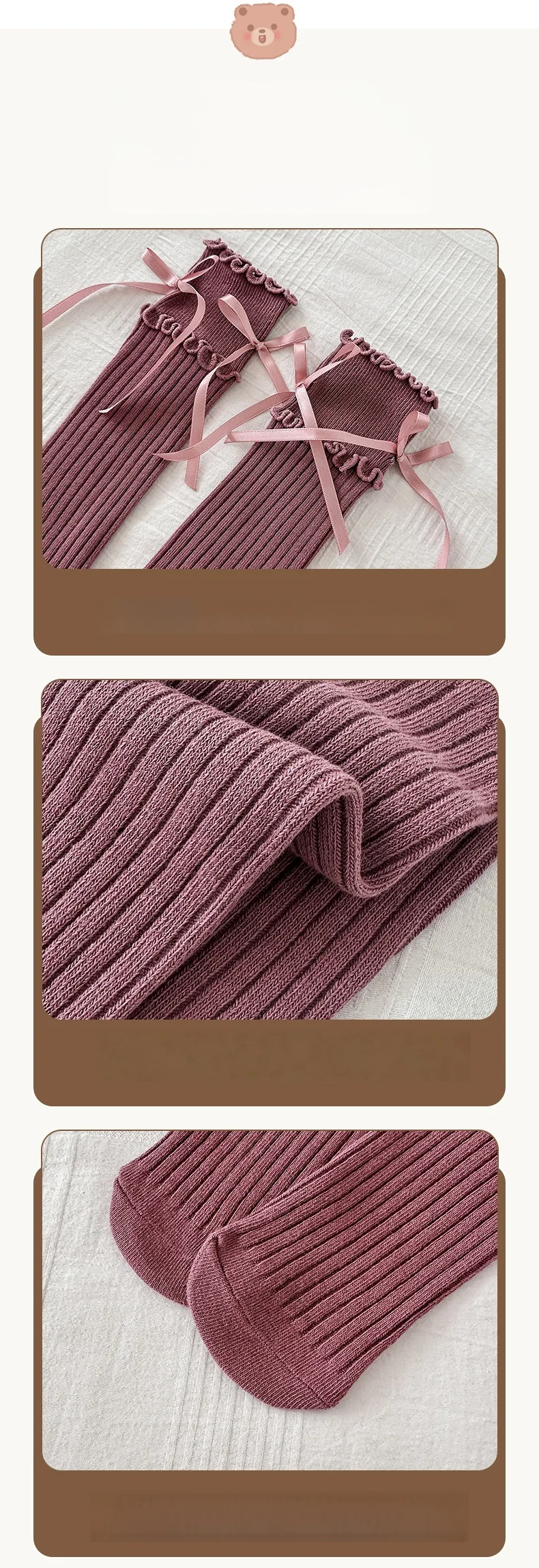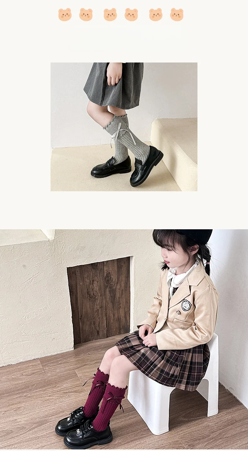 2026 calcetines de primavera para niños, calcetines con lazo para niñas, calcetines sólidos con lazo y volantes, calcetines sin tacón para niños para niñas