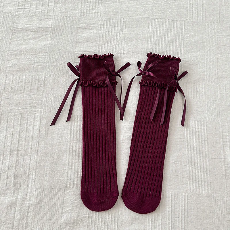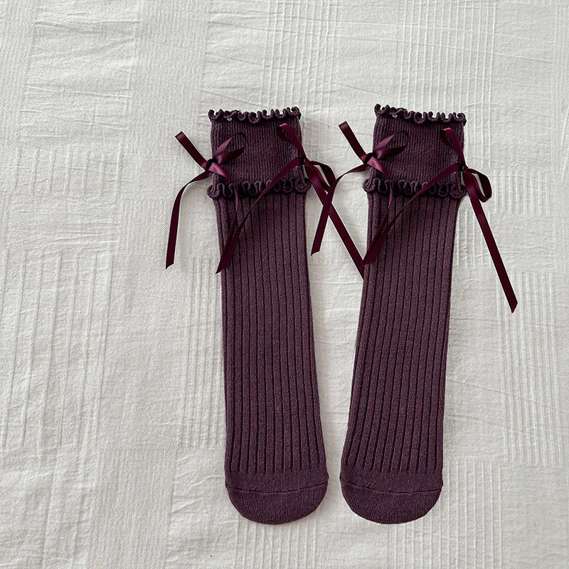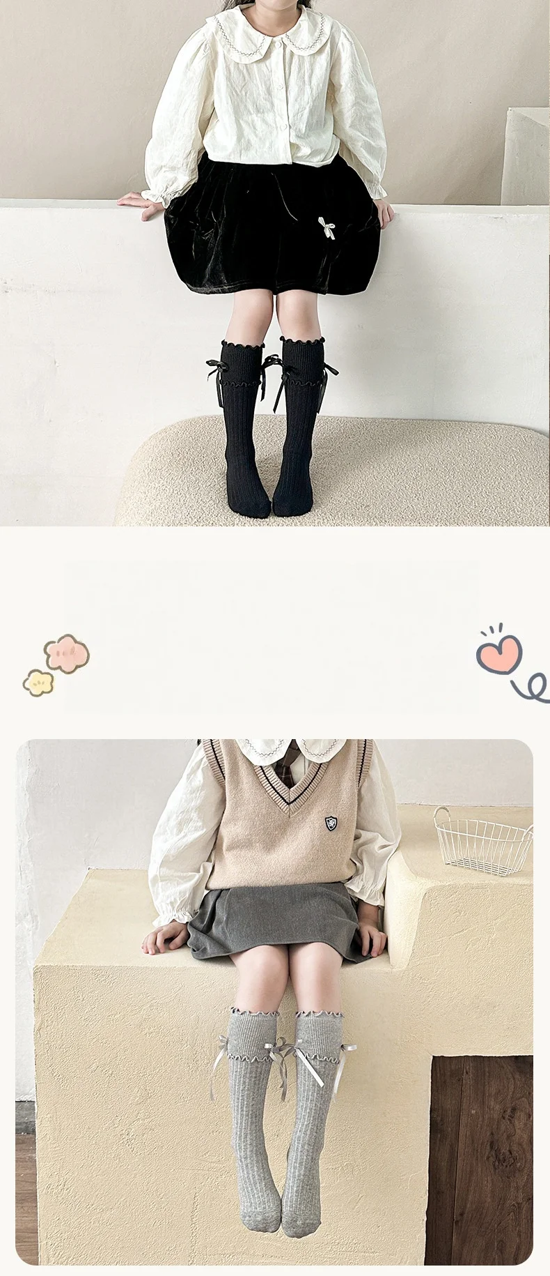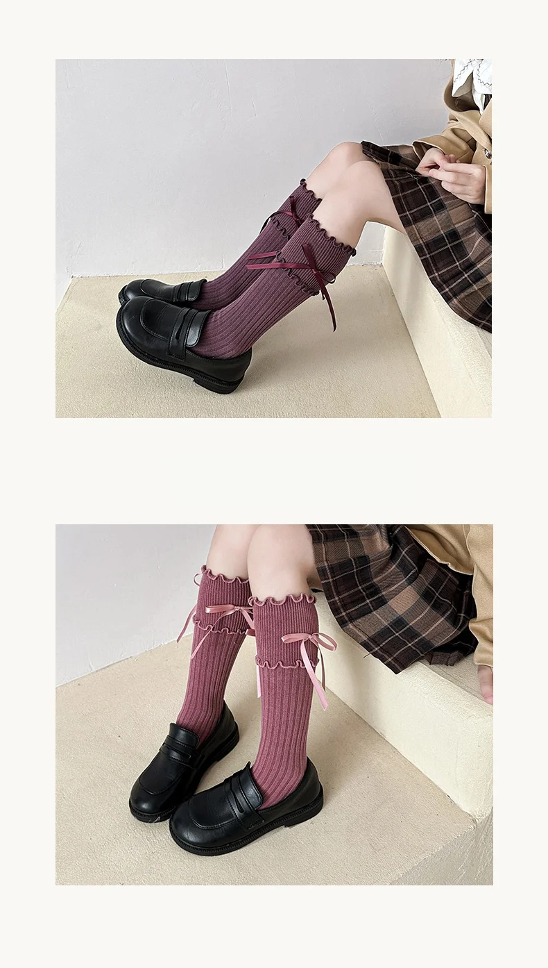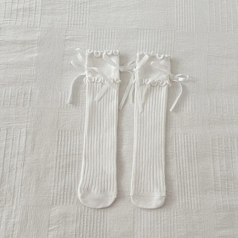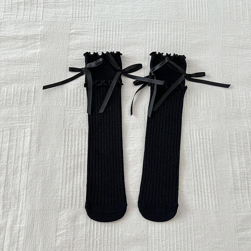 2026 calcetines de primavera para niños, calcetines con lazo para niñas, calcetines sólidos con lazo y volantes, calcetines sin tacón para niños para niñas