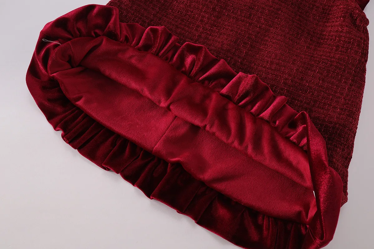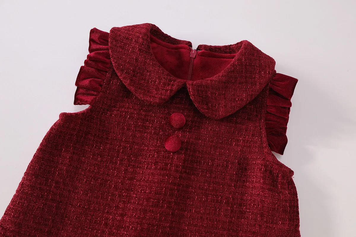 2026 Otoño Invierno niñas traje de Navidad Navidad moda coreana cálido grueso polar rojo vestido de Año Nuevo vestidos de cumpleaños B302