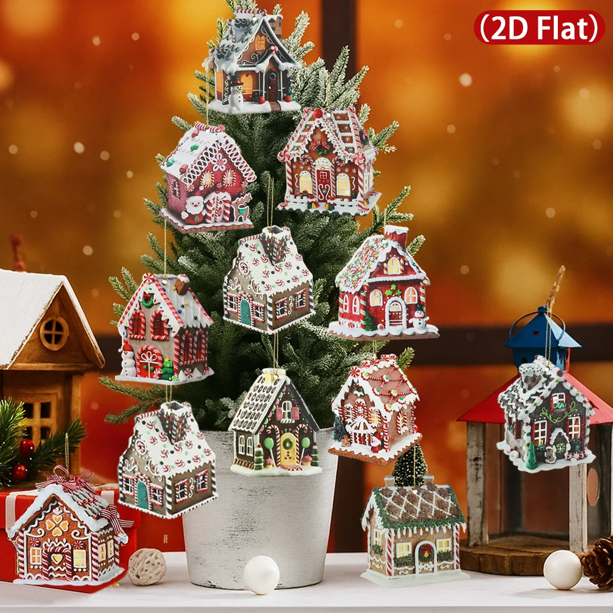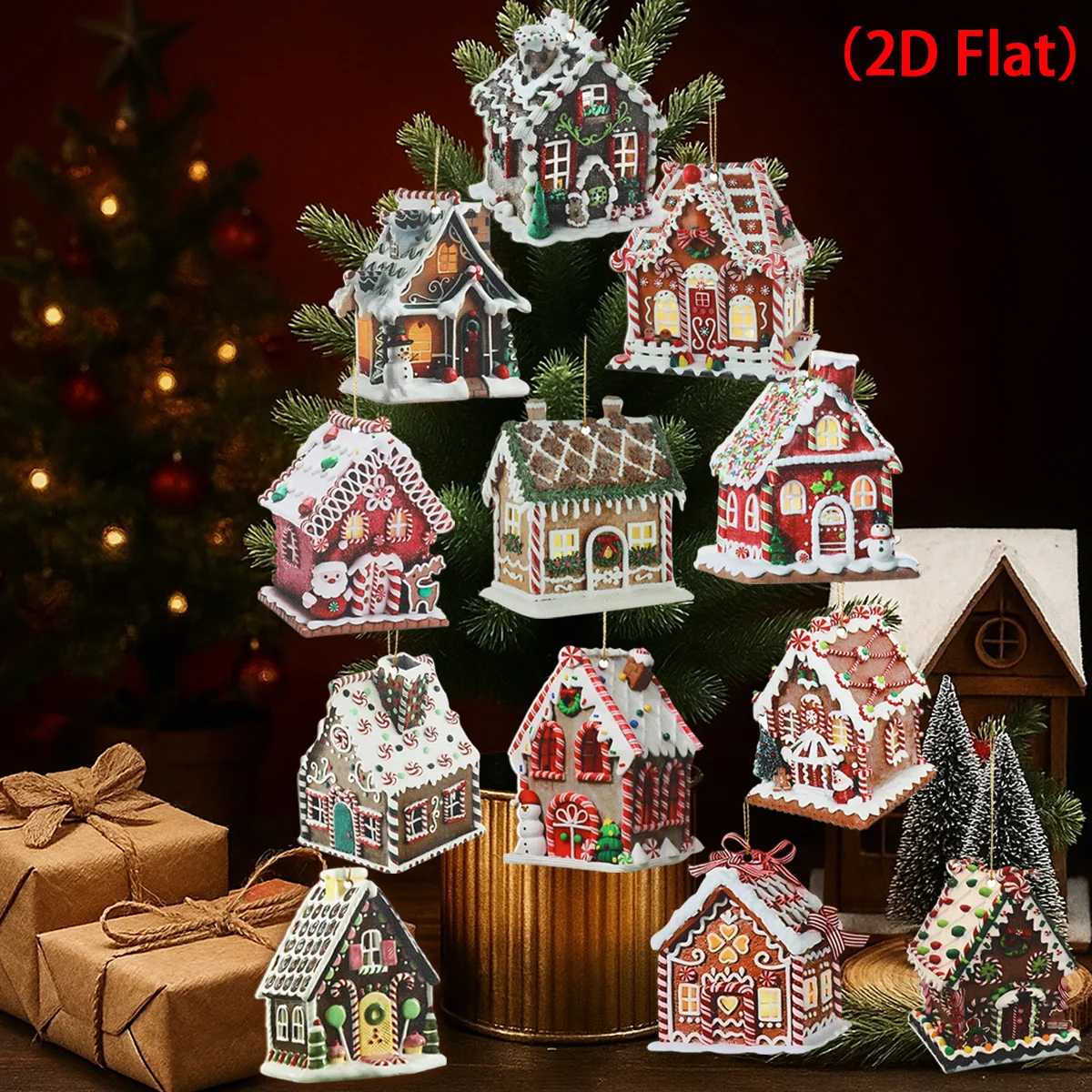 De hecho, son solo fachadas de casas. Claro. La foto da la impresión de que tienen volumen. En absoluto Estoy decepcionado. Se integrará con la decoración si los coloco en el árbol.