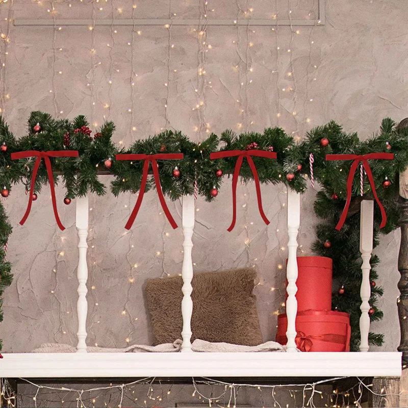Uso versátil: ata estos lazos a coronas, ventanas, puertas, paredes, escaleras, cercas, chimeneas, porches, árboles y más.Son una adición exquisita a cualquier espacio, añadiendo calidez y alegría navideña.