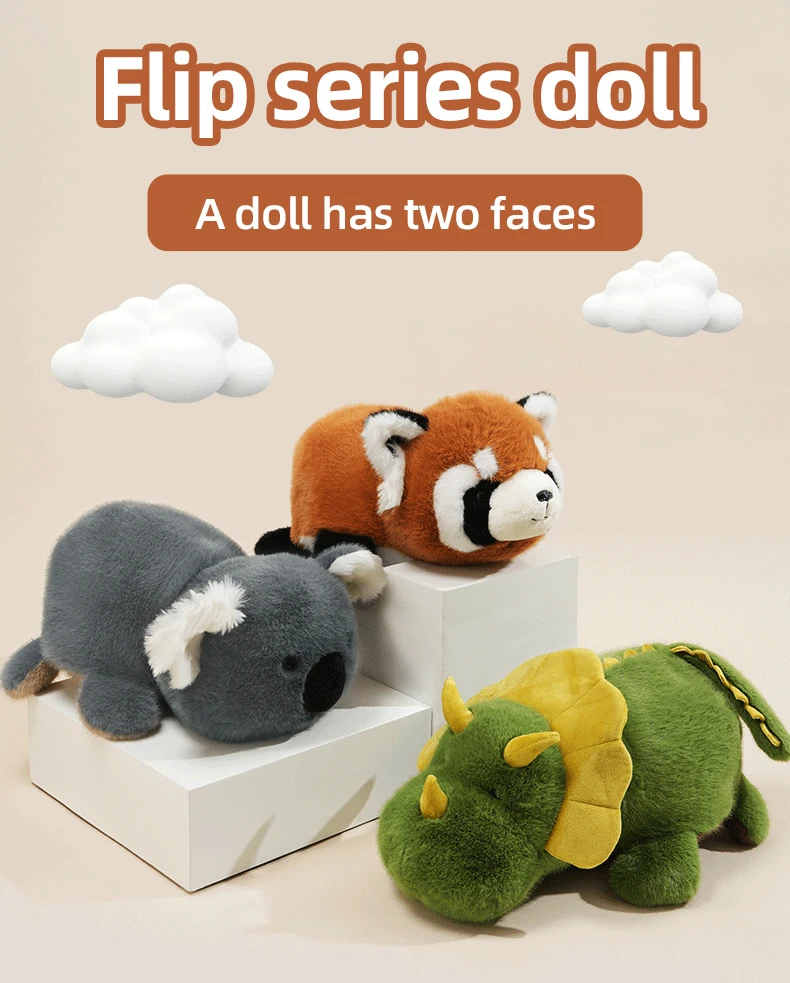 25/40CM Flip-up mapache Panda dinosaurio Koala muñecas se transforman en diversión decoración del hogar animales juguetes de peluche para niños regalos para adultos - imagen 1
