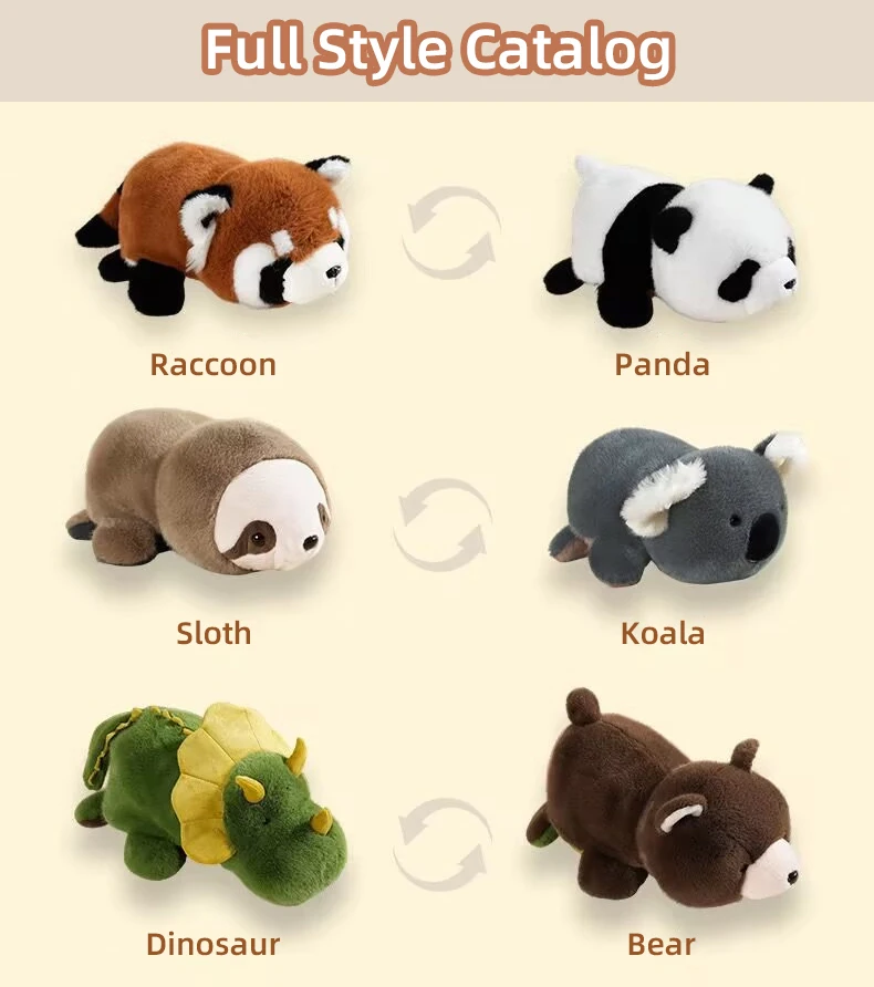 25/40CM Flip-up mapache Panda dinosaurio Koala muñecas se transforman en diversión decoración del hogar animales juguetes de peluche para niños regalos para adultos