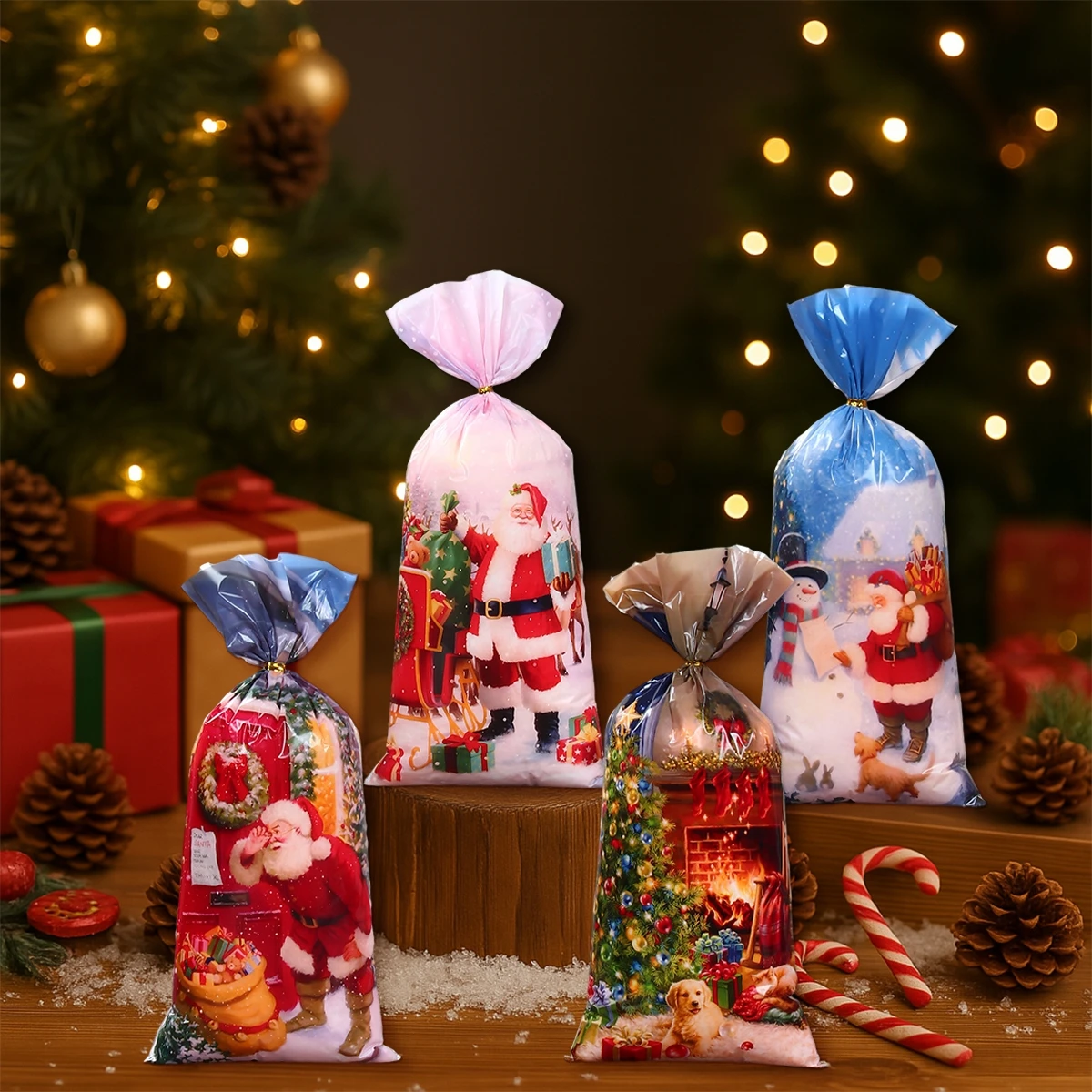 Hermosos paquetes de pequeños dulces, Papá Noel. Muy delgados, se rompen fácilmente.