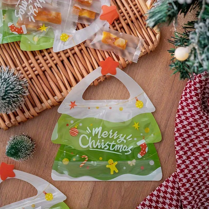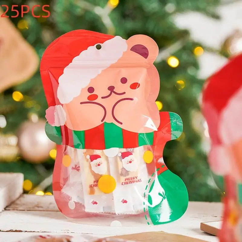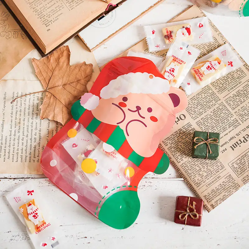 Comprar 25 uds DIY lindo azúcar caramelo Snack niño regalos de Navidad bolsas de almacenamiento decoración navideña plástico bolsa de dulces de dibujos animados de Navidad