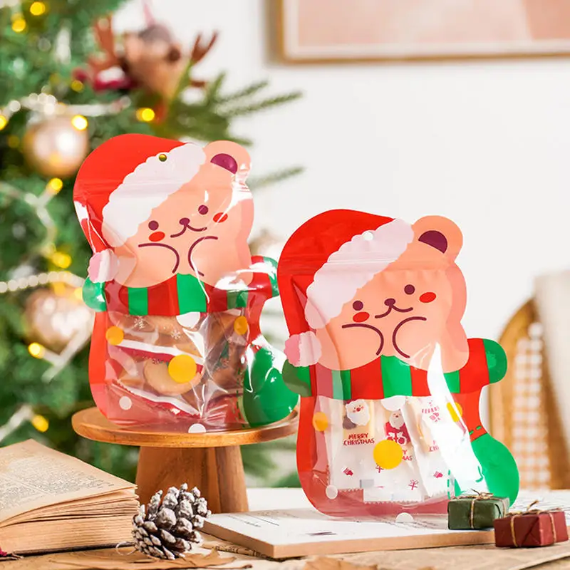 Comprar 25 uds DIY lindo azúcar caramelo Snack niño regalos de Navidad bolsas de almacenamiento decoración navideña plástico bolsa de dulces de dibujos animados de Navidad