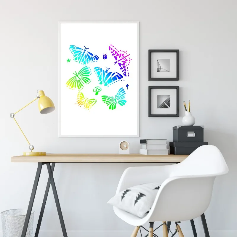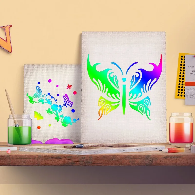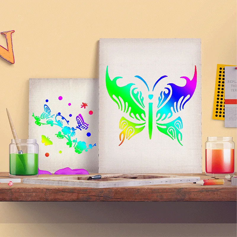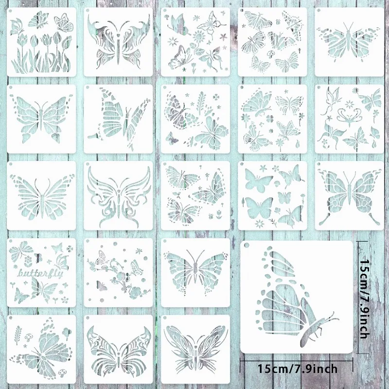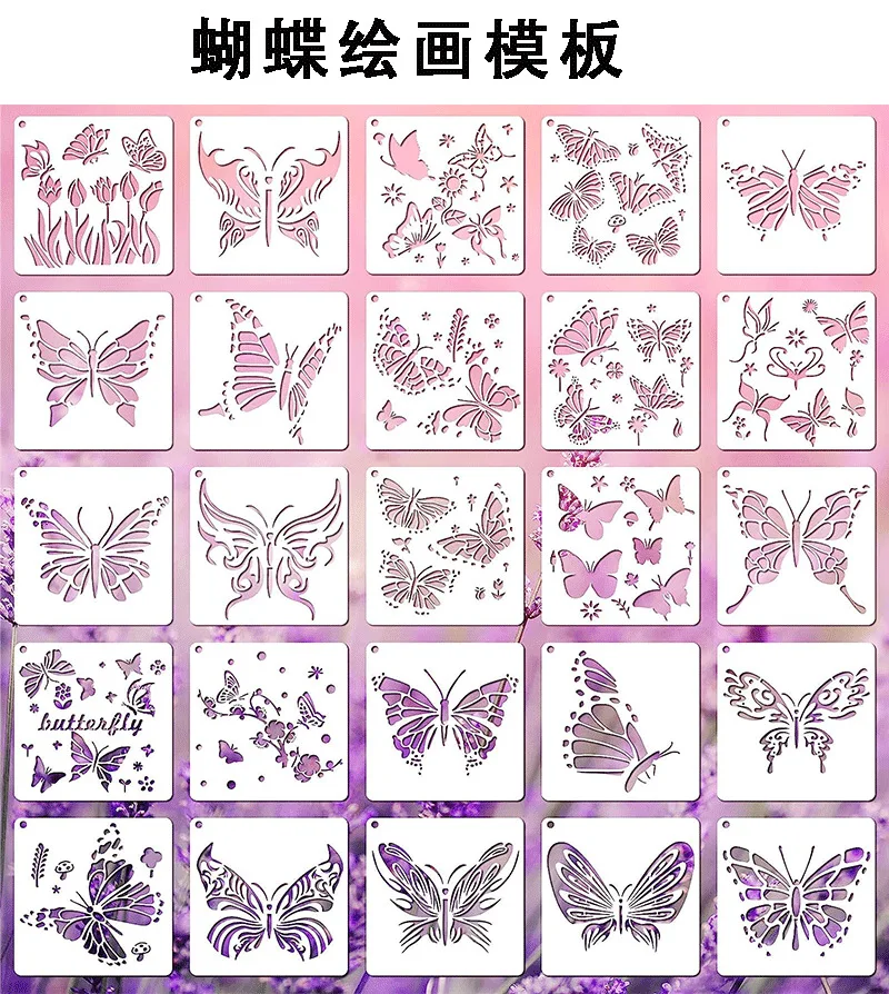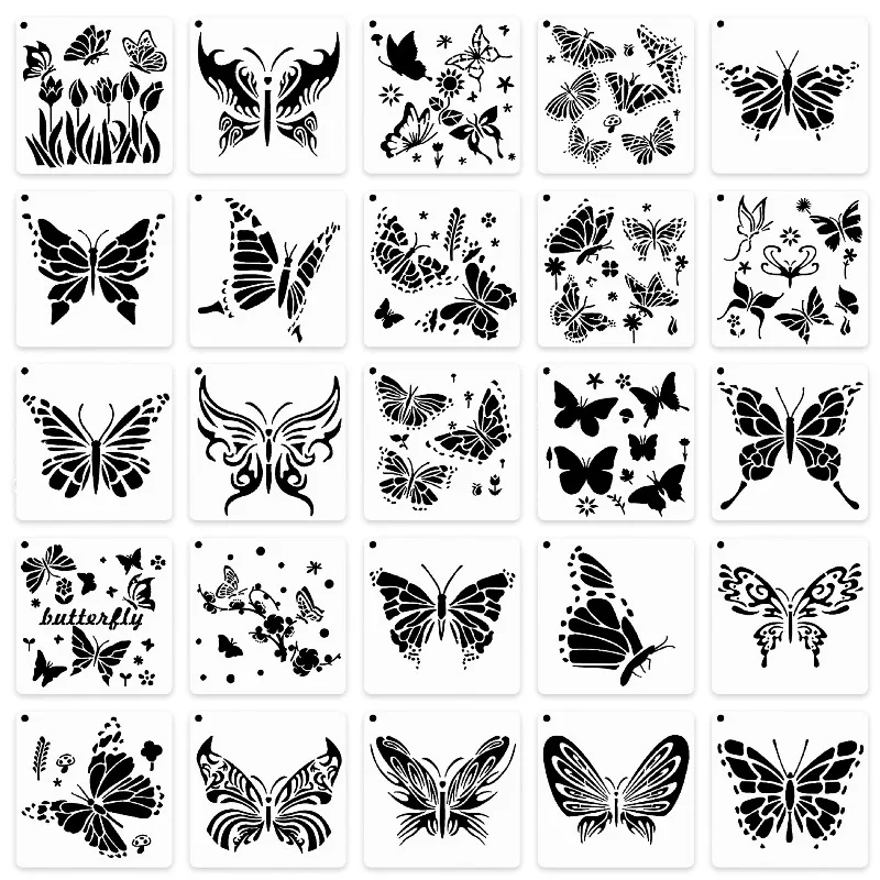 Comprar 25 unids/set PET mariposa plantilla hueca para niños pintura álbum de recortes diarios cartel hecho a mano pared Spray Graffiti plantillas