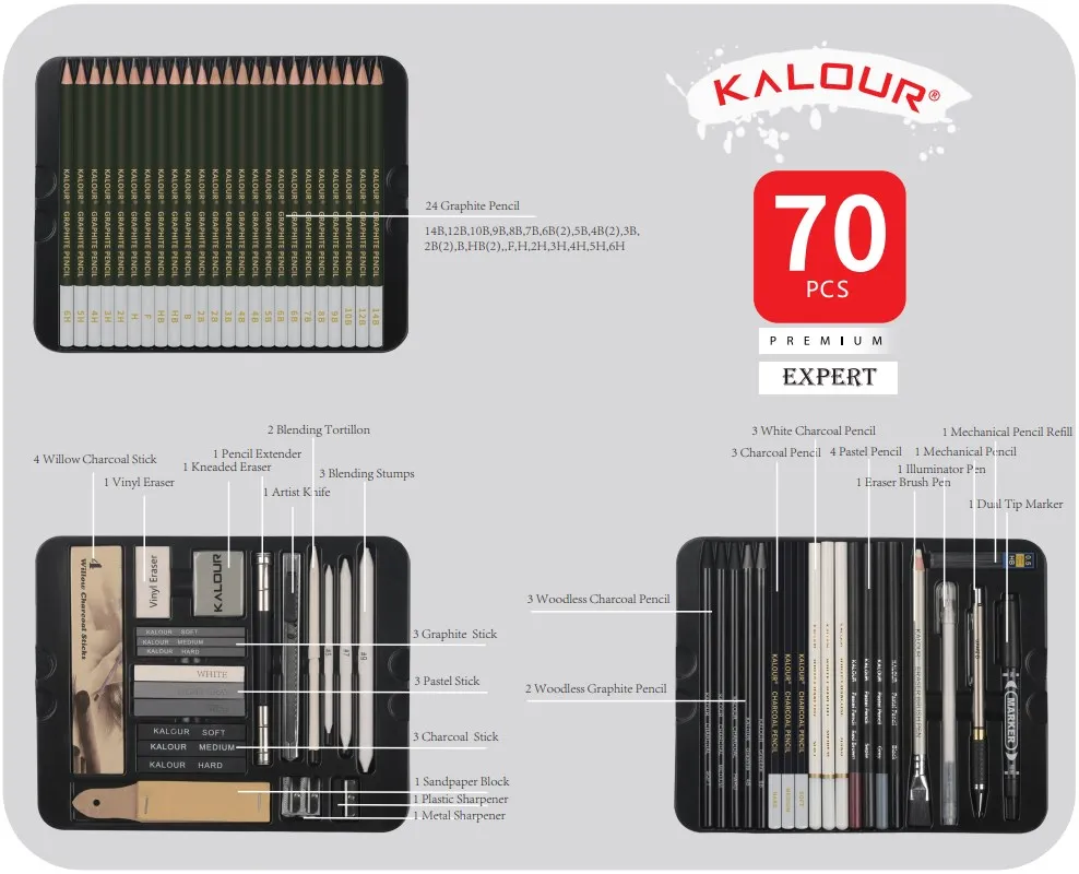 24 GrafitePencil (14B,12B,10B,9B,8B,7B,6B(2),5B,4B(2),3B,2B(2),B,HB(2),F,H,