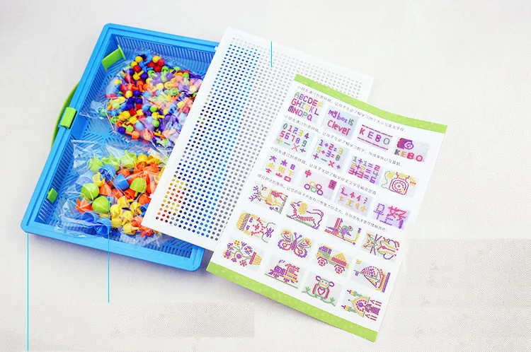 Comprar 296 unids/set caja de cuentas de uñas de setas de grano, juegos de rompecabezas 3D inteligentes, tablero de rompecabezas para niños, juguetes educativos