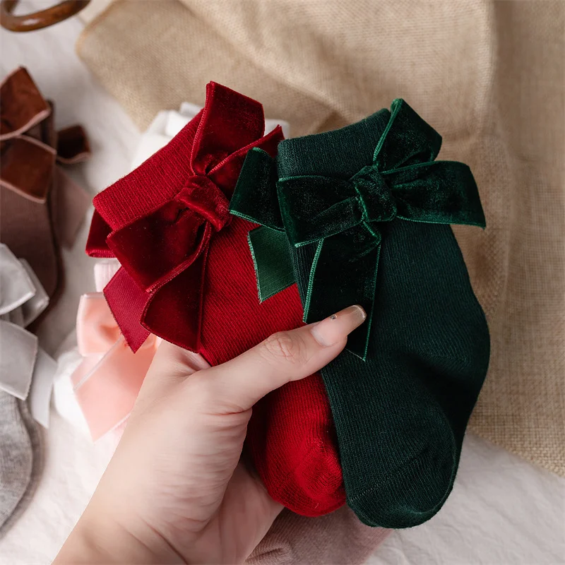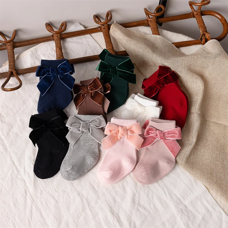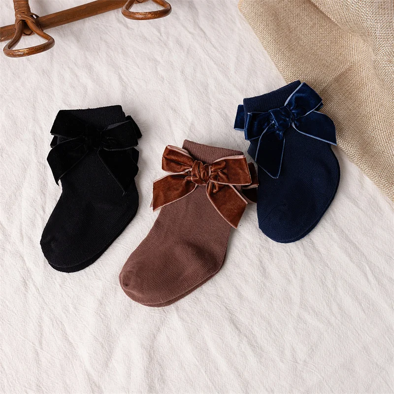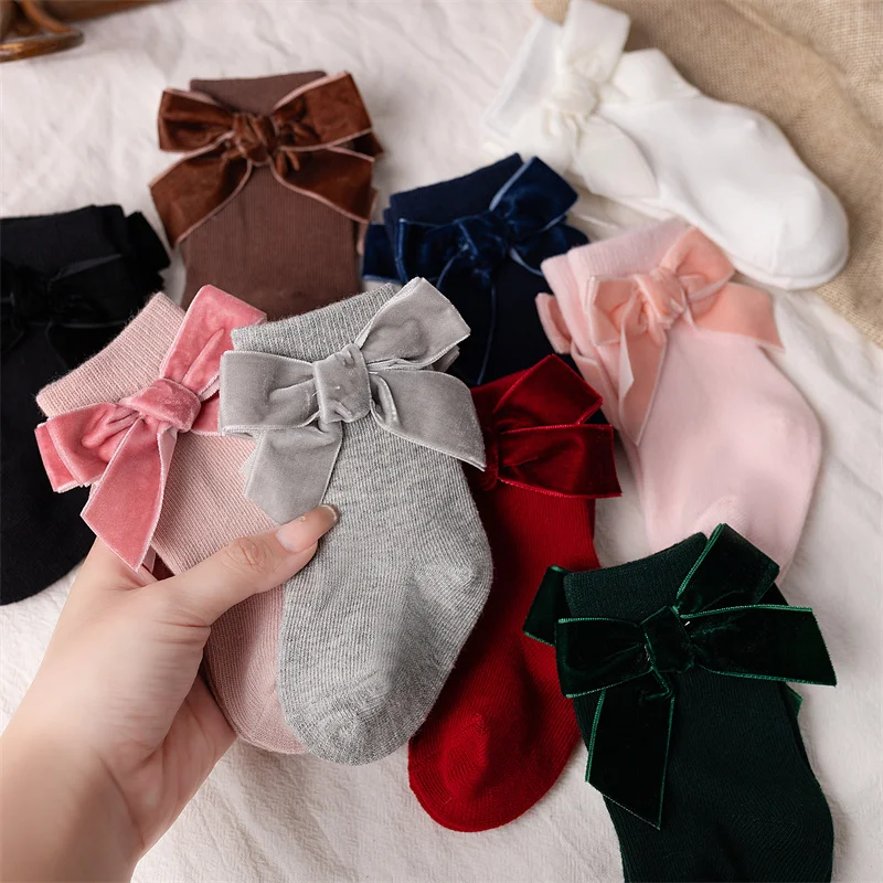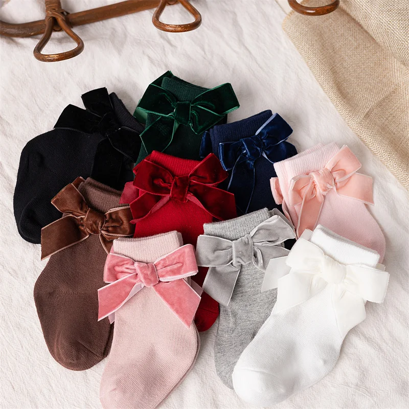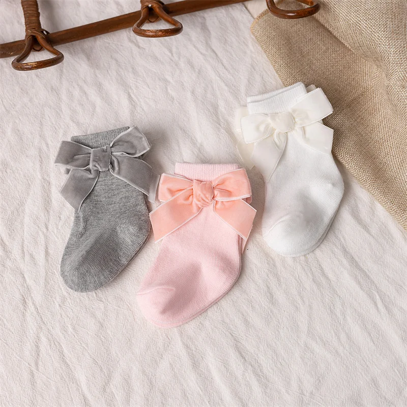 Comprar 3 ペア/ロット春秋キッズガールズソックス新生児かわいいちょう結び靴下幼児ソフトコットンショートチューブ靴下 0-5 年