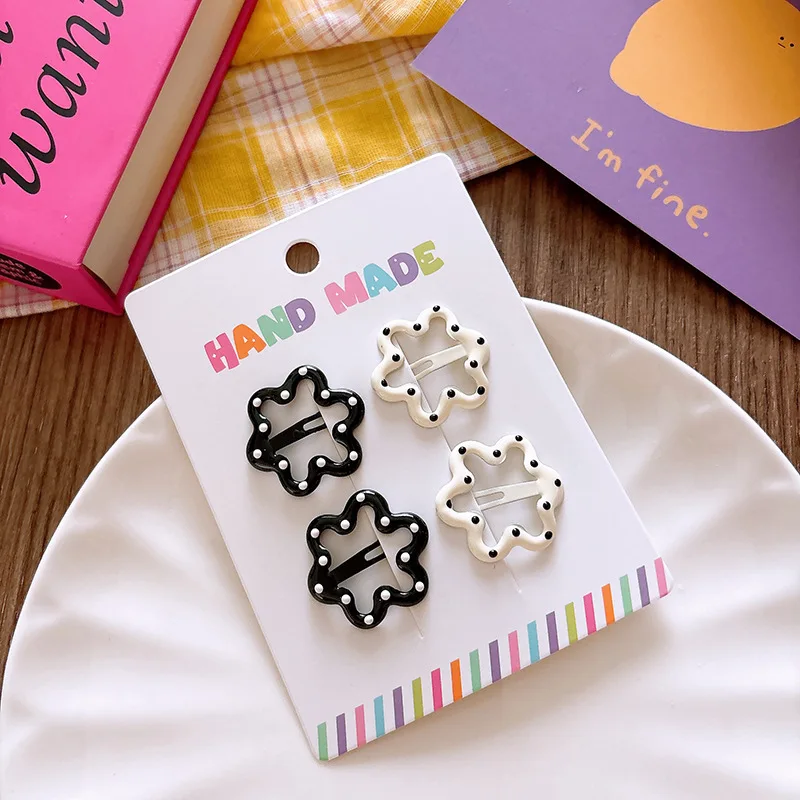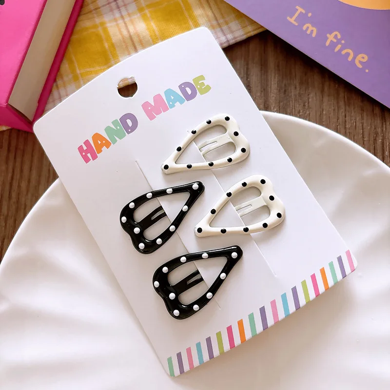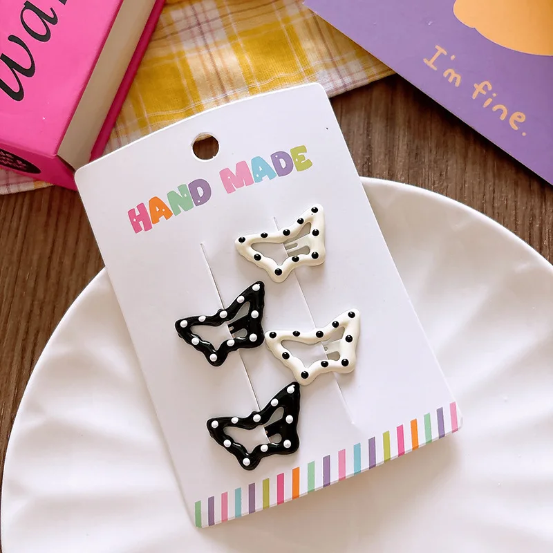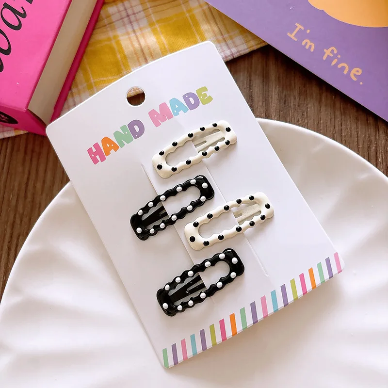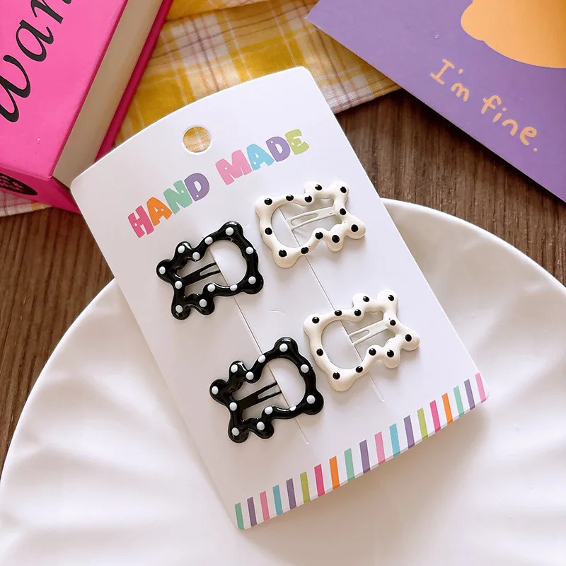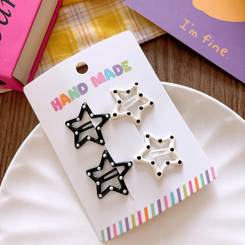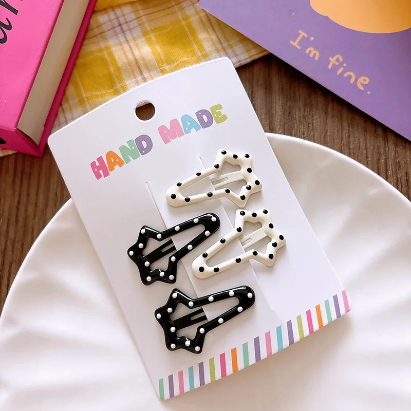 3/4 Uds. Pinzas para el cabello de lunares blanco y negro, pinza para el pelo con lazo de estrella, Clip de Metal para niños de oso dulce, pasadores BB simples y versátiles para niños