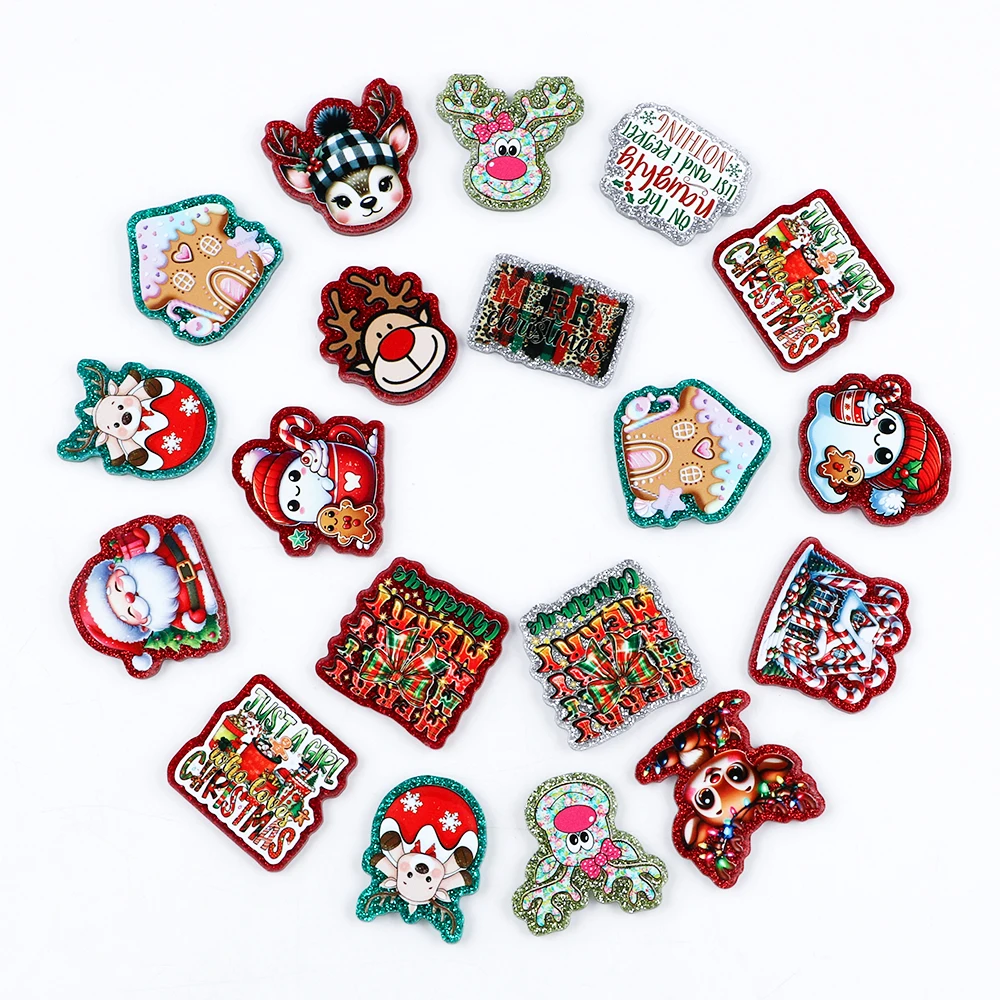 3-5 unids/lote estilo Navidad/Halloween cuentas acrílicas con parte posterior plana para joyería DIY pendiente etiqueta de pecho hebilla Etc accesorios