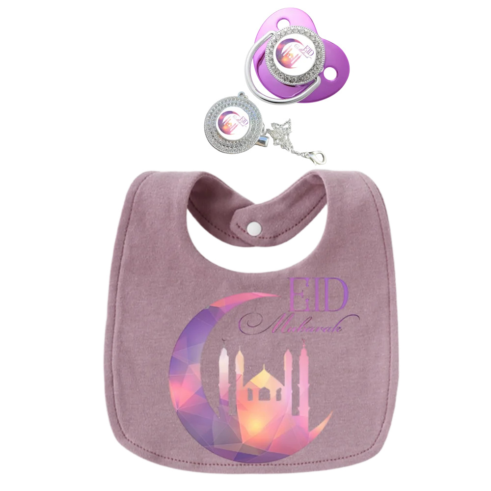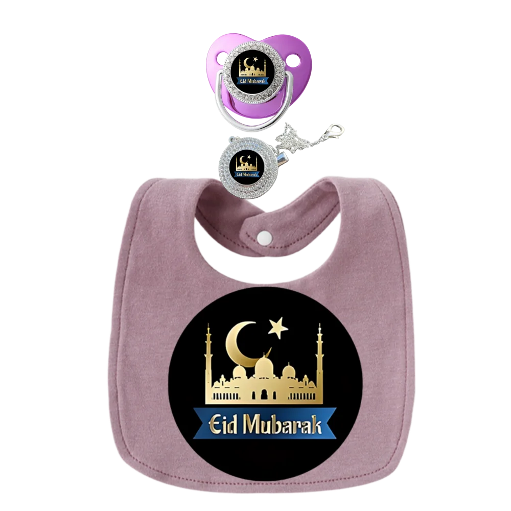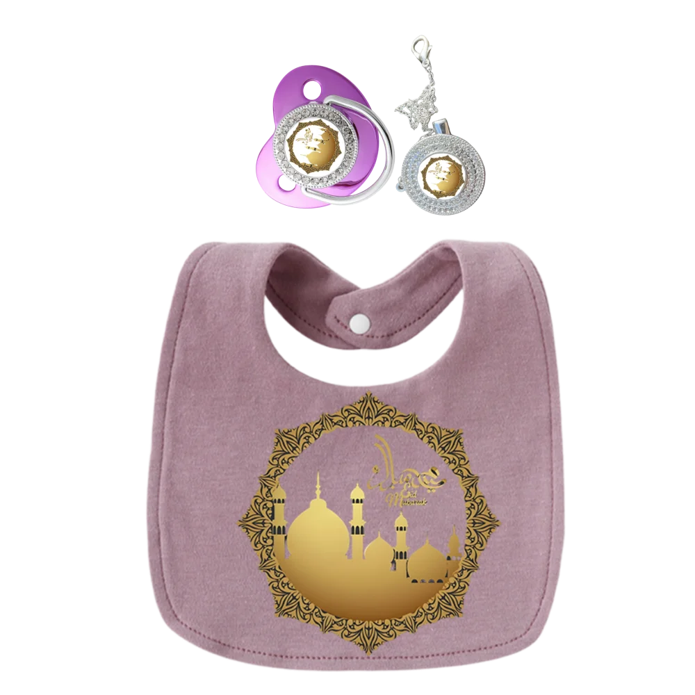 3 juegos de baberos morados para bebé, ropa para eructar, chupetes y chupetes musulmán para bebé, toallas para saliva para recién nacidos, delantales de algodón para niños para niñas y niños