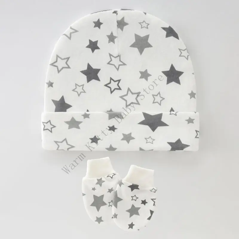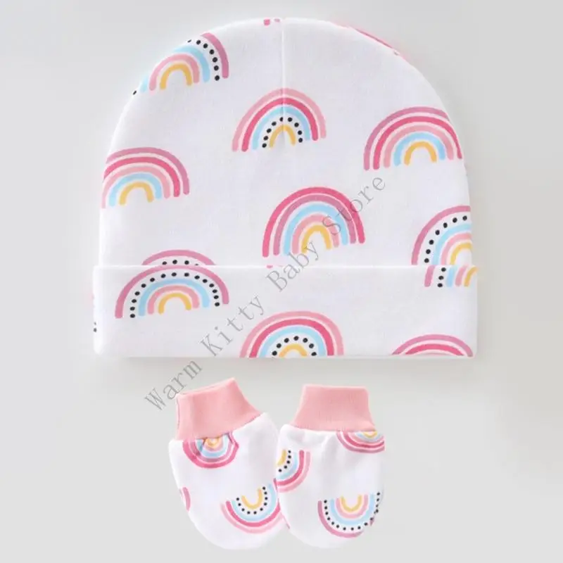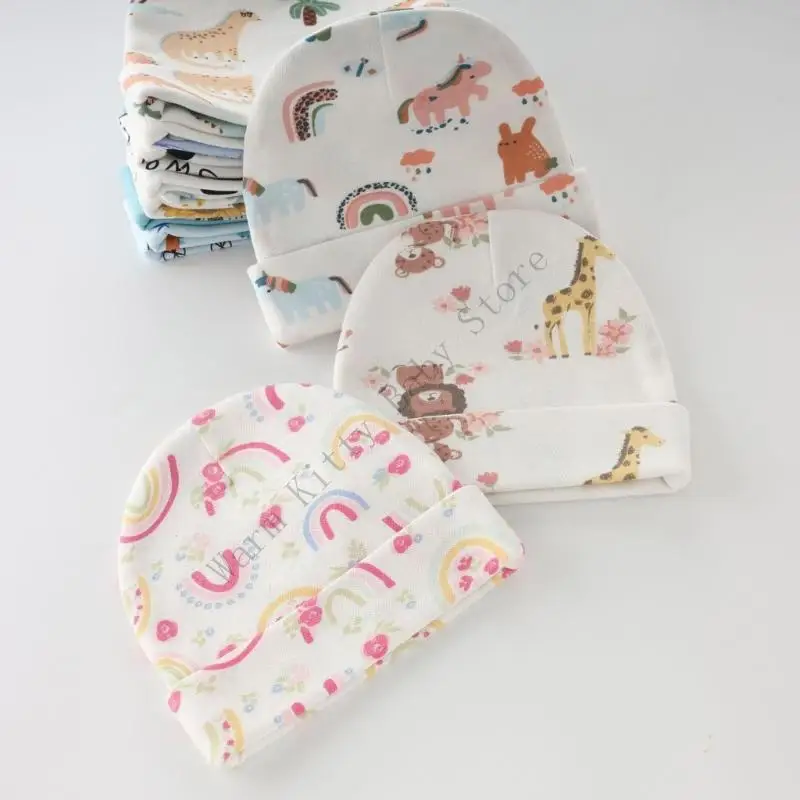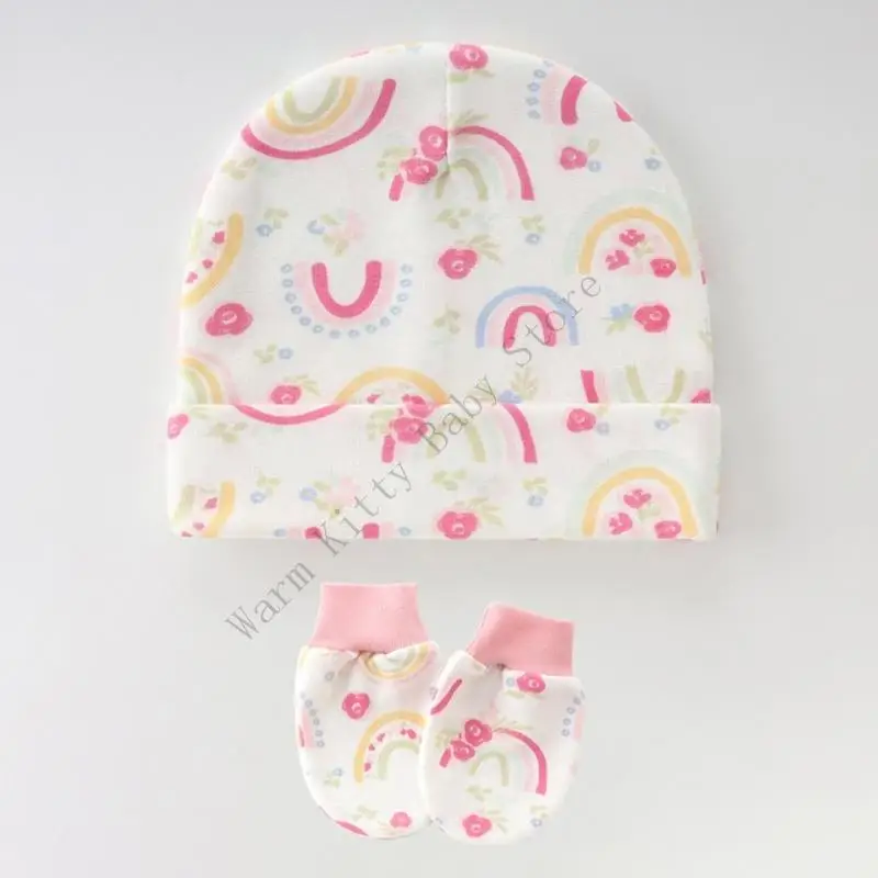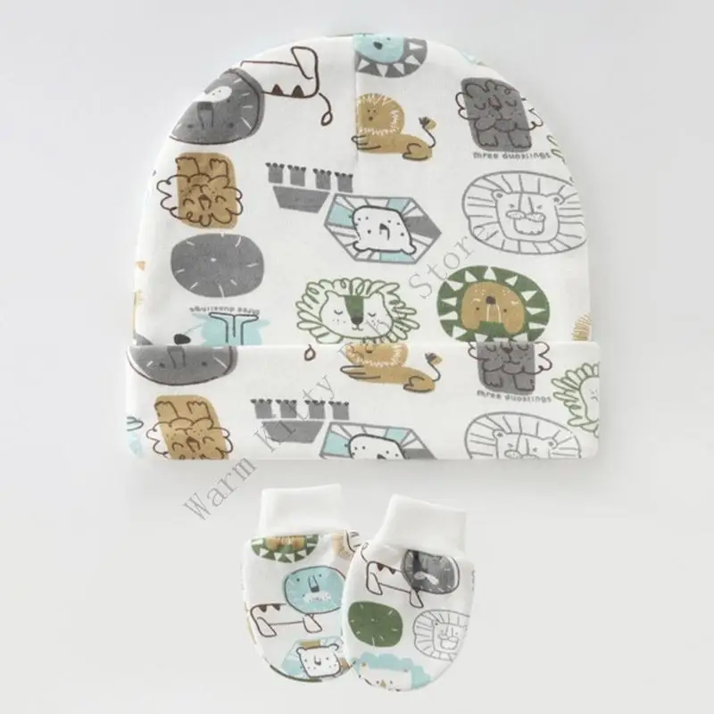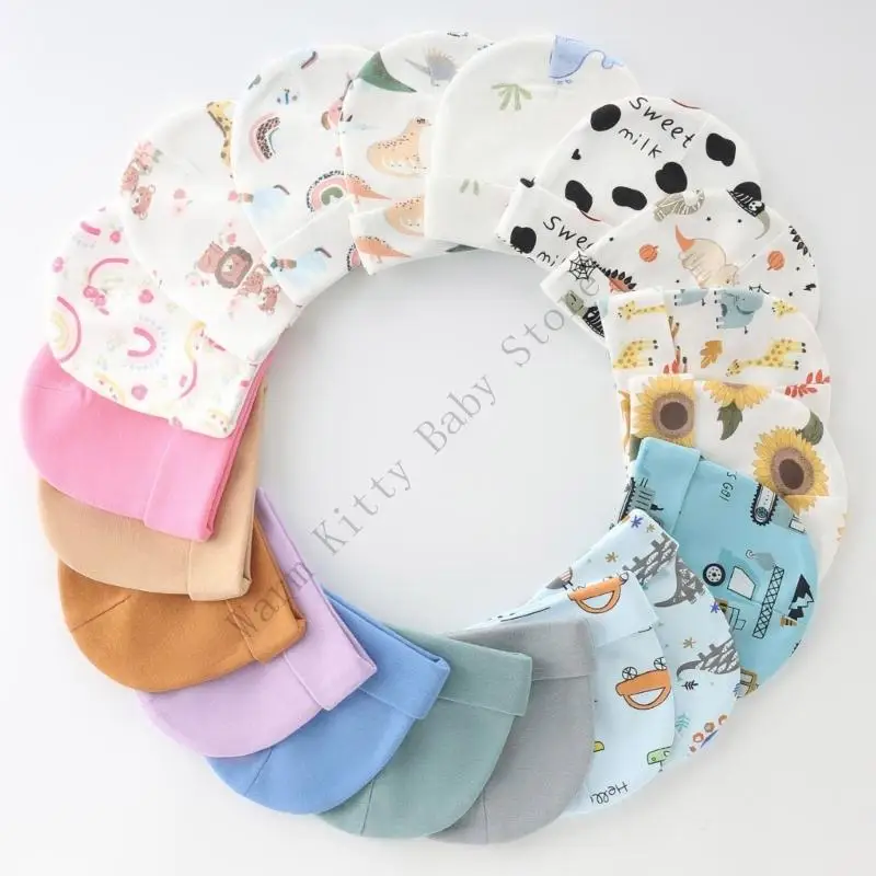 3 juegos de gorro y guantes de algodón suave con estampado bonito para bebé, gorros de Hospital Unisex para primavera y verano, guantes antiarañazos para 0-6M