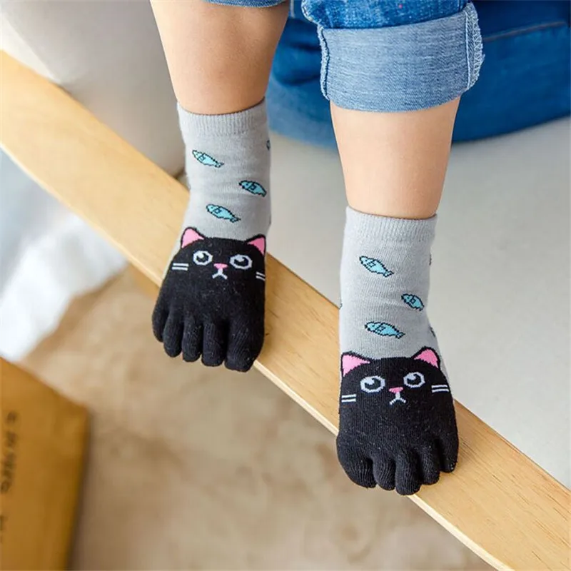 Comprar 3 par/lote calcetines para niños y niñas, bonitos calcetines suaves con estampado de cinco dedos de dibujos animados para niños, calcetines para bebés y niñas de 3 a 12 años en las cuatro estaciones