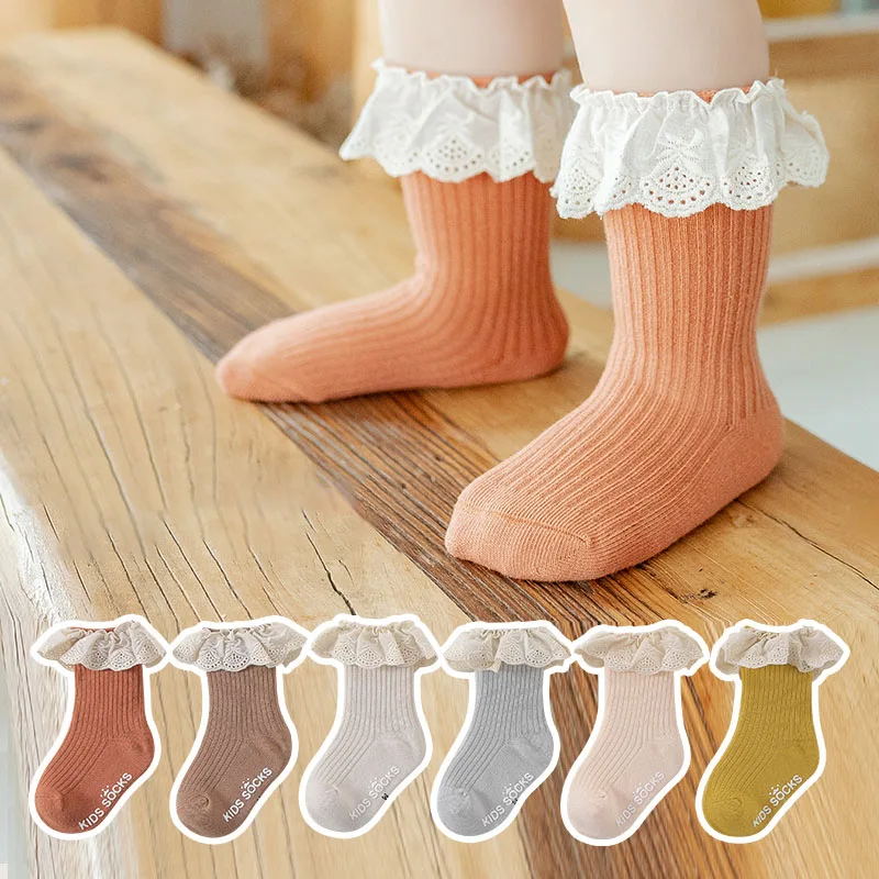 Comprar 3 par/lote MILANCEL nueva primavera infantil en calcetines de tubo bebé lindo Patchwork calcetines de encaje 0-3T calcetines para niñas