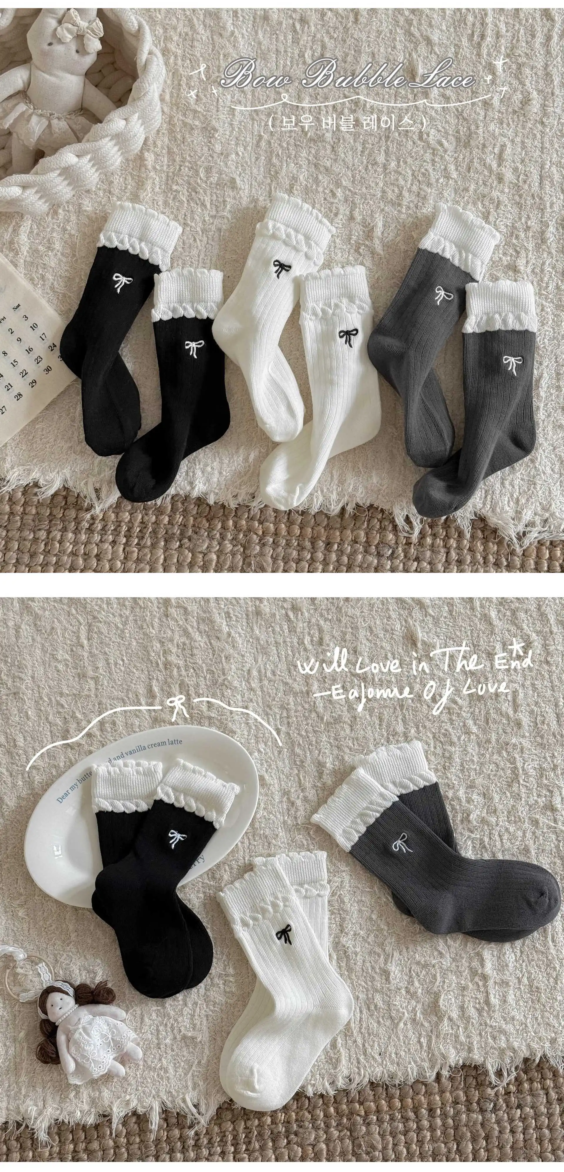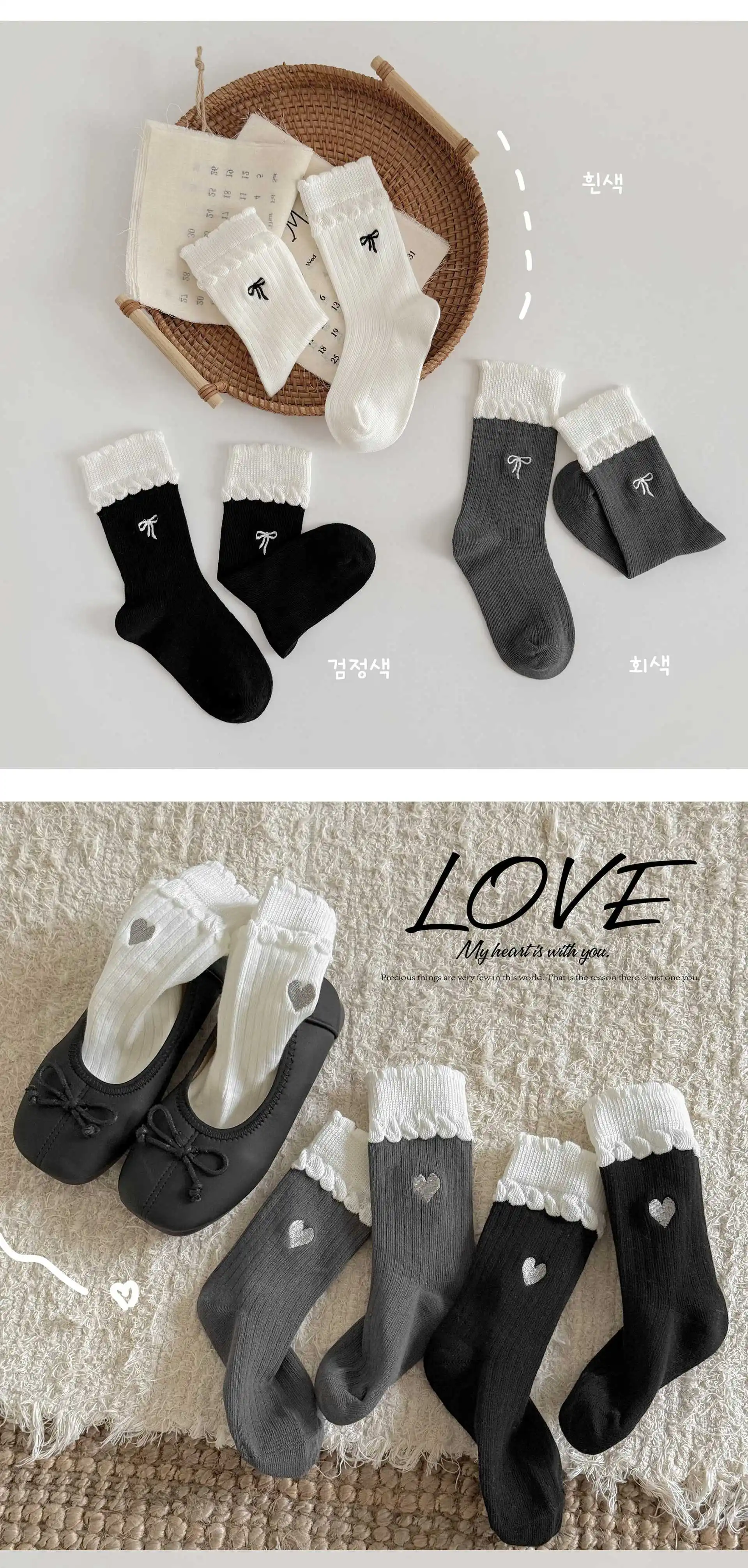3 par/set calcetines de estilo coreano para niñas de media tripulación con lazo bordado diseño de adorno de encaje calcetines de princesa de algodón para primavera y otoño para niños