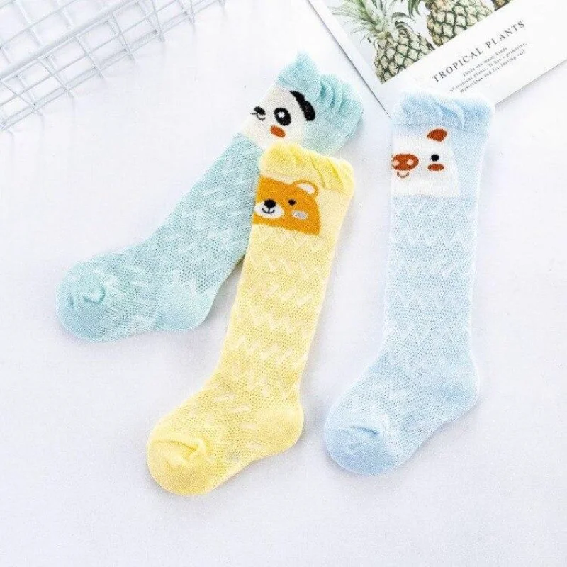 3 unids/set calcetines hasta la rodilla para bebé recién nacido calcetines finos de malla de verano de dibujos animados calcetines antimosquitos de algodón para bebés niños y niñas pequeñas cosas para bebés