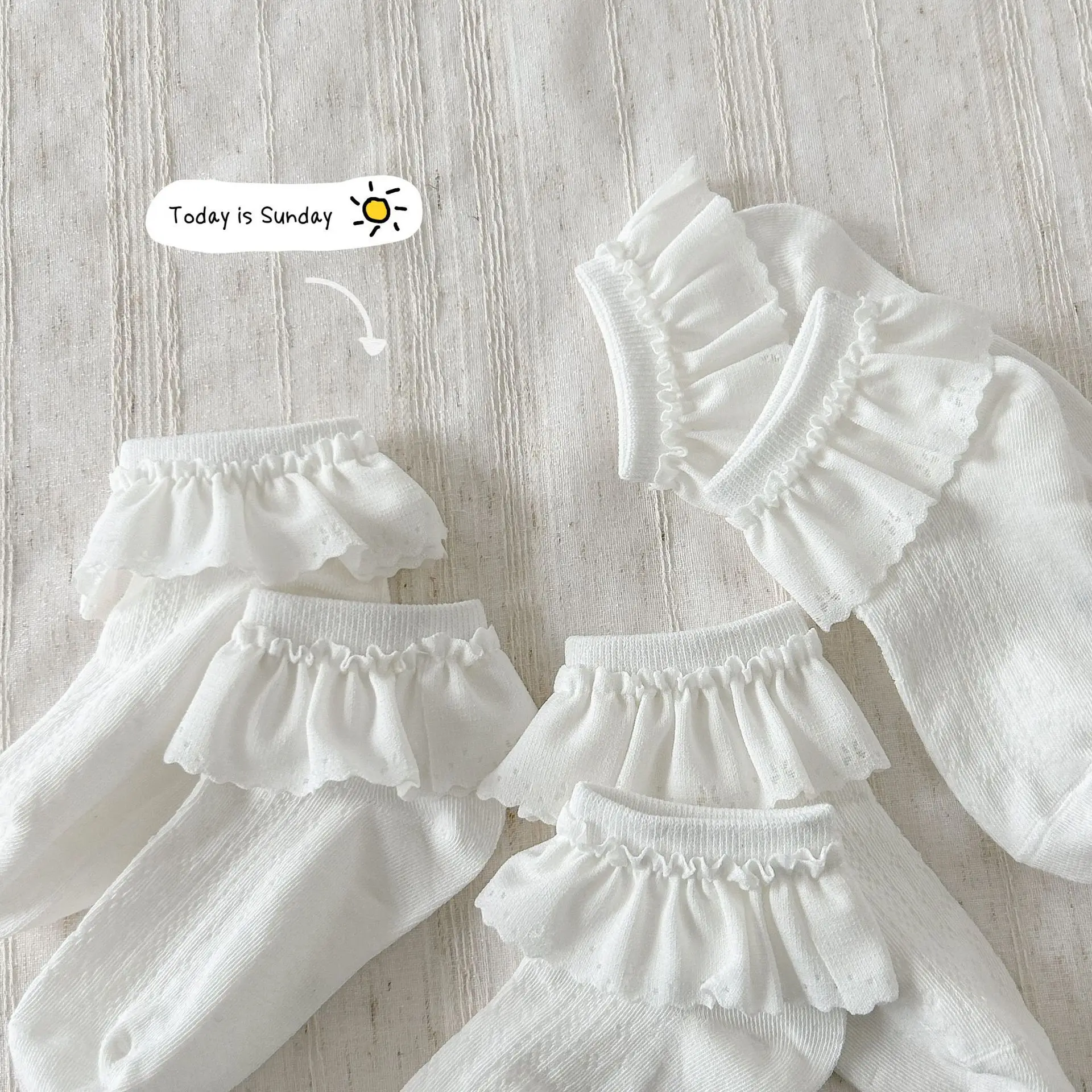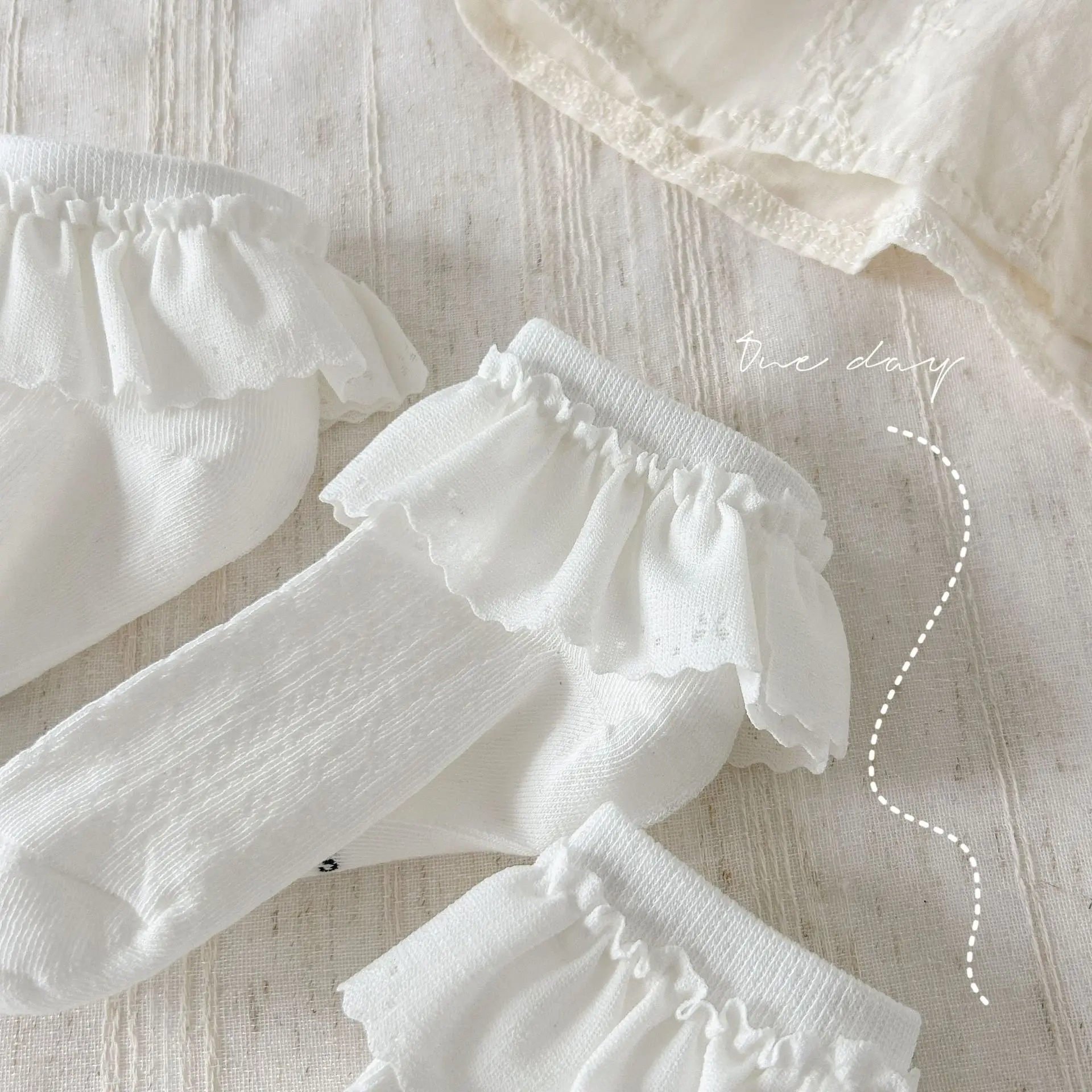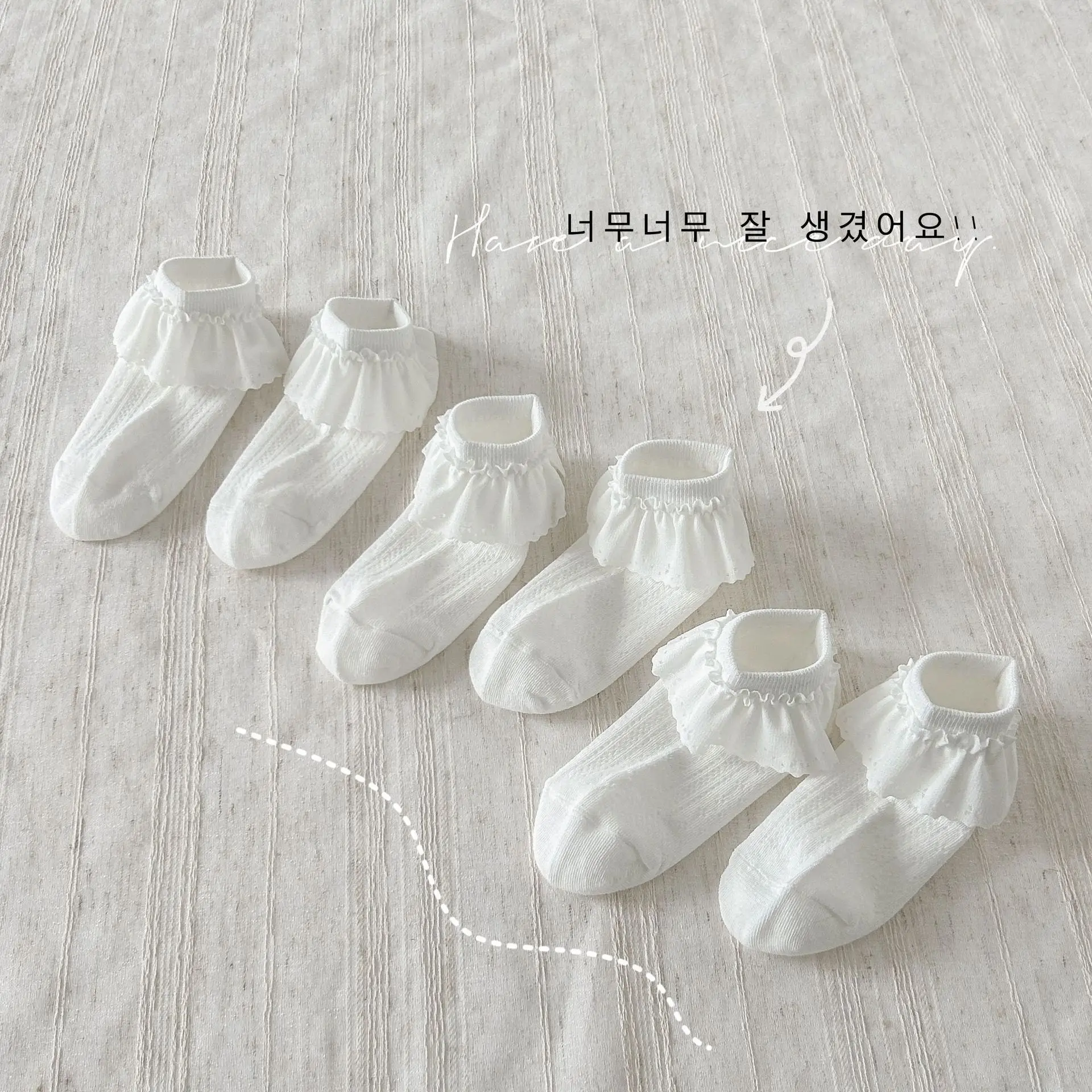 3 par/set Color blanco lindo calcetín de princesa para niños niña verano fino transpirable suave algodón calcetín para niños dulce arco volante calcetín
