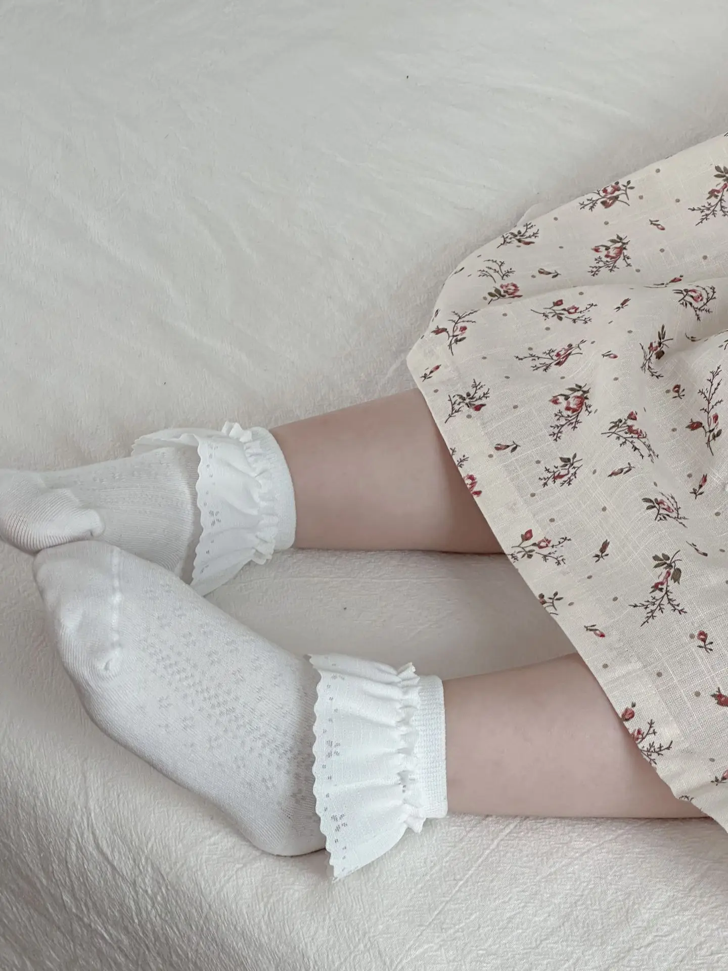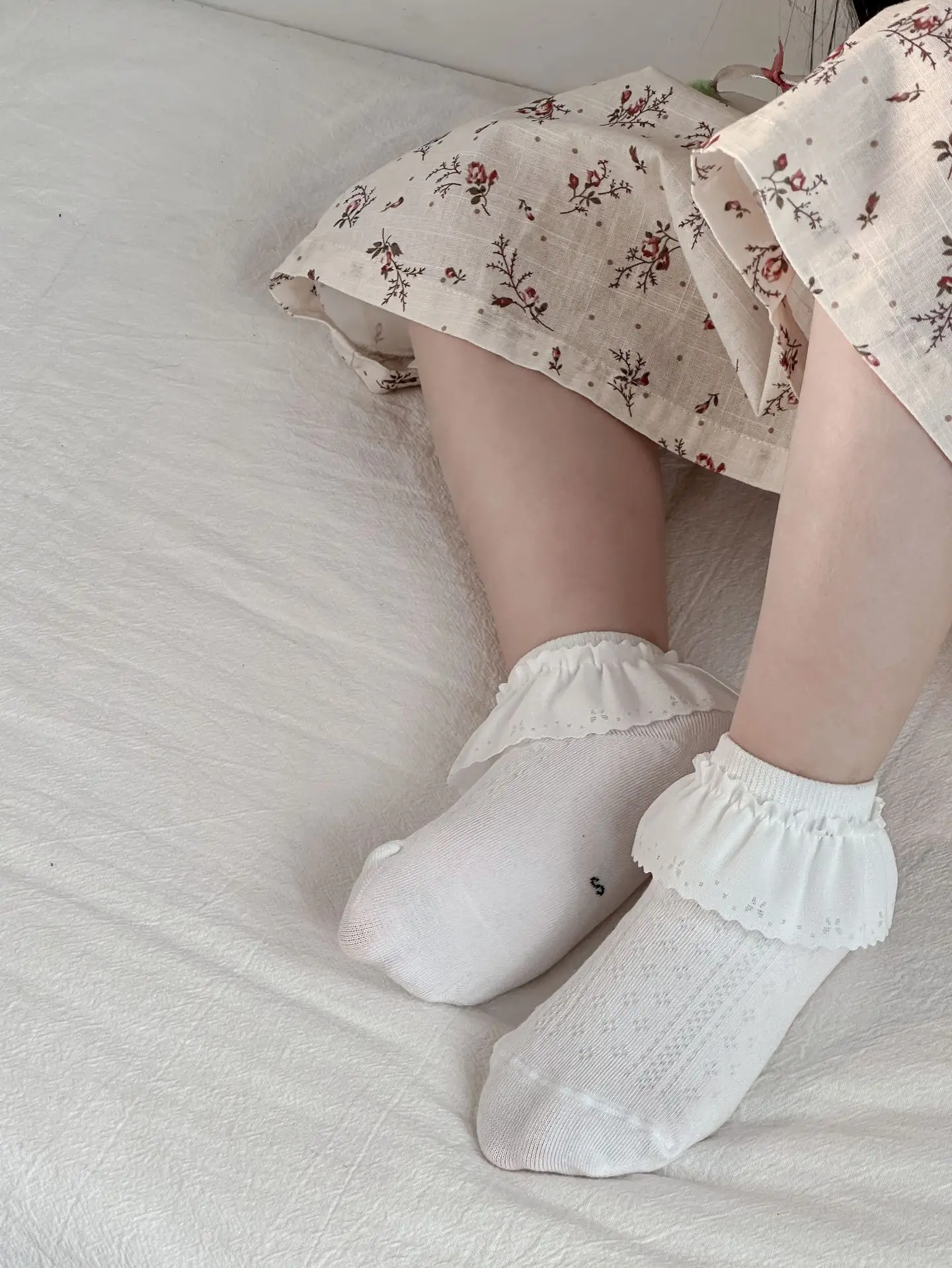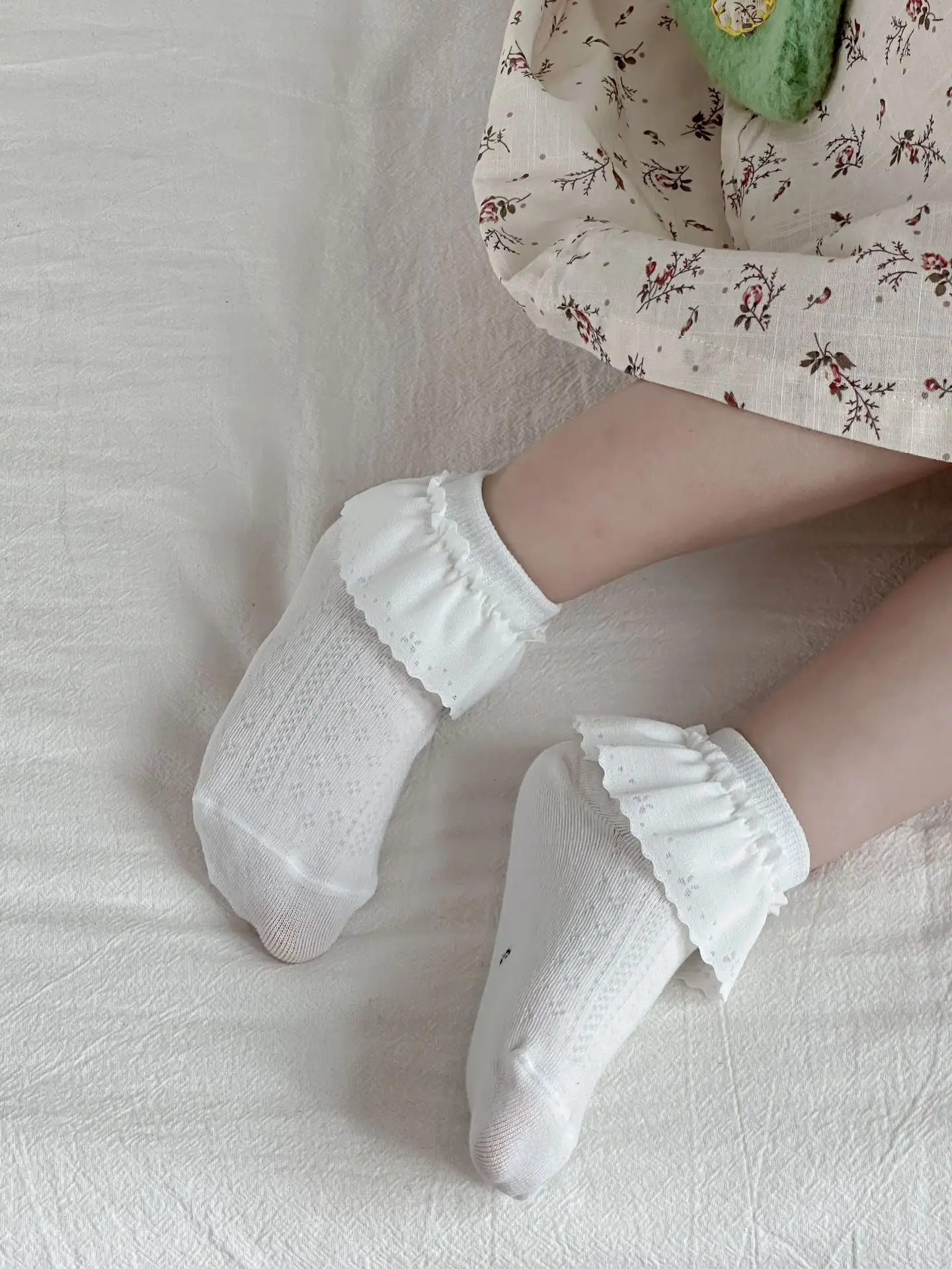 3 par/set Color blanco lindo calcetín de princesa para niños niña verano fino transpirable suave algodón calcetín para niños dulce arco volante calcetín