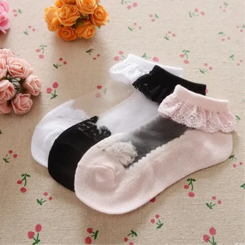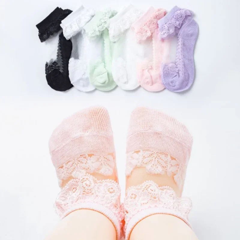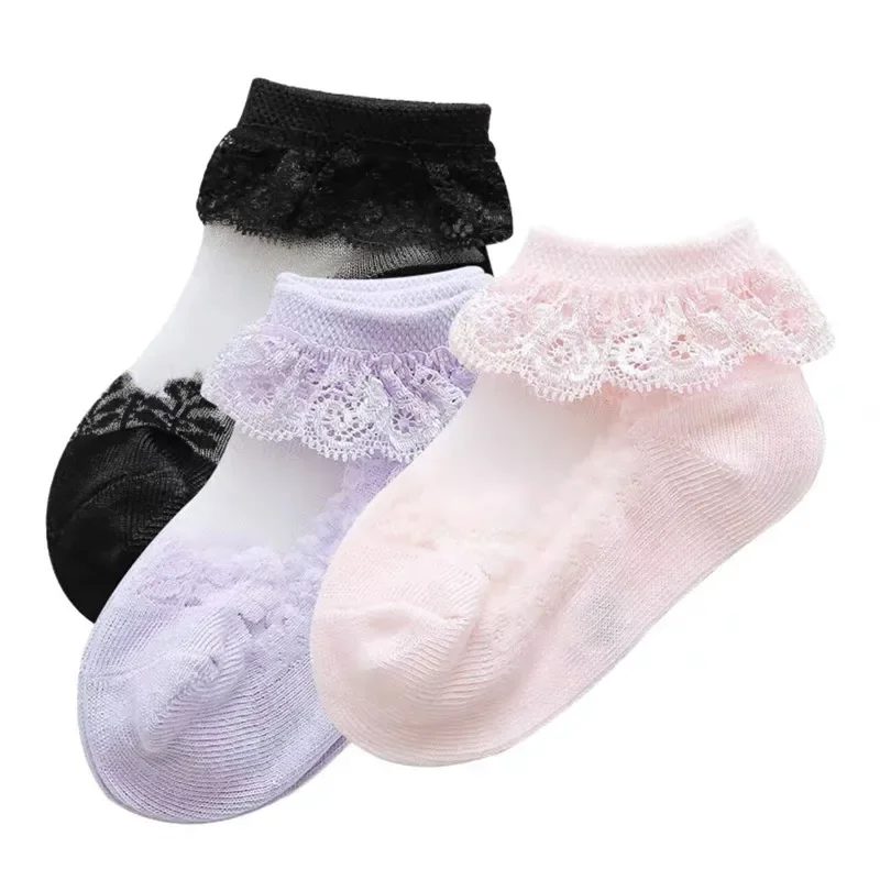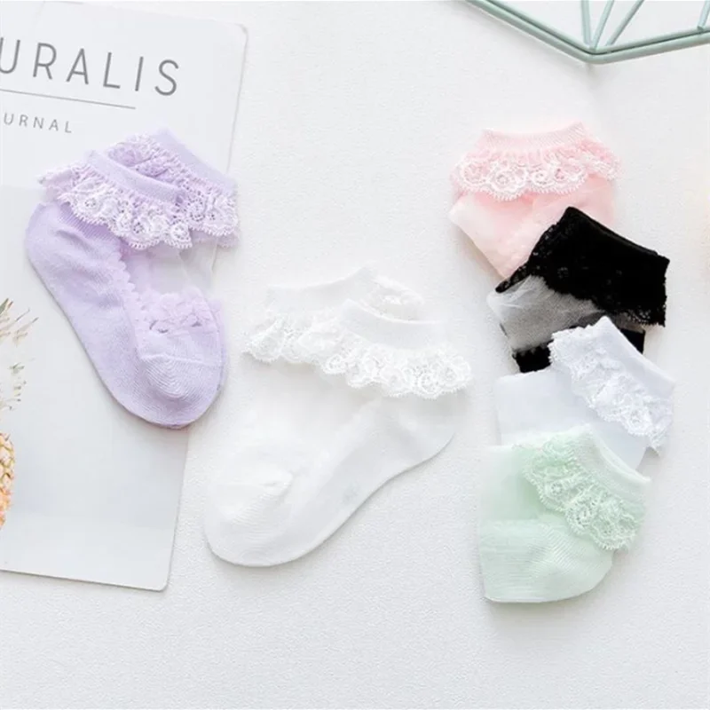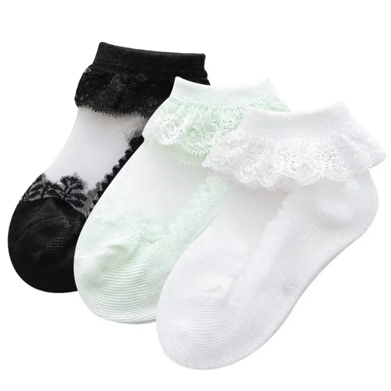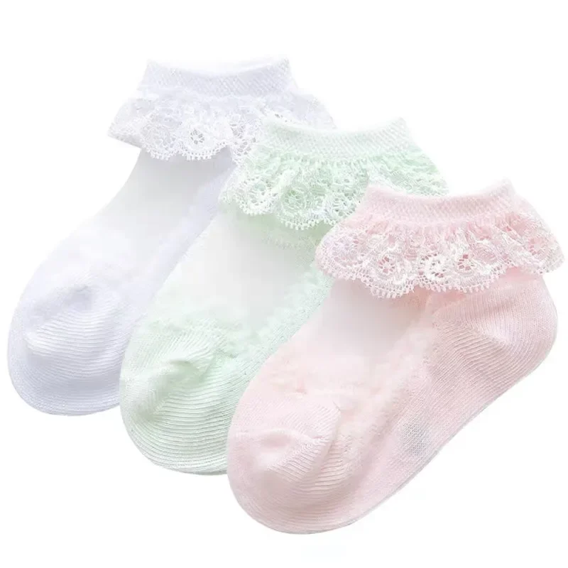 Comprar 3 pares de calcetines de encaje para niñas, calcetines suaves con volantes de verano transpirables para niñas y bebés