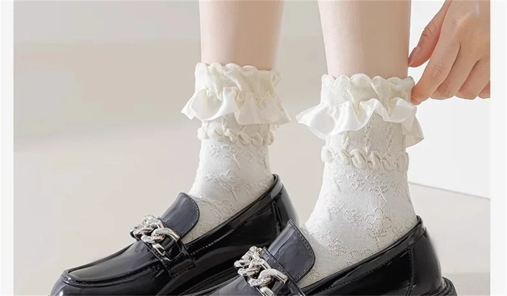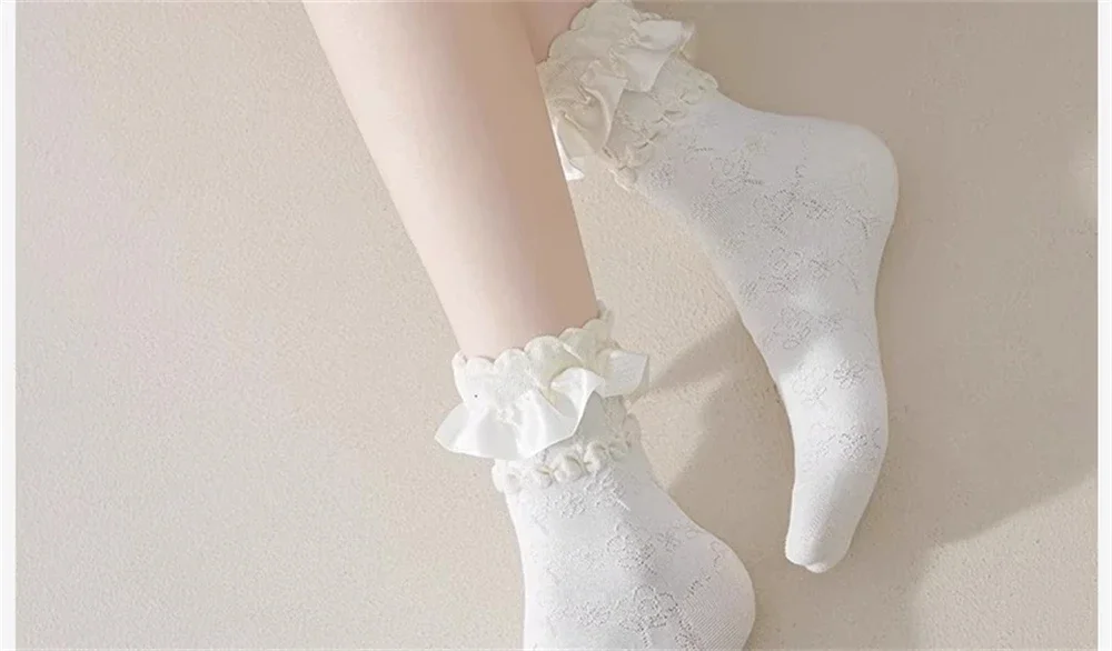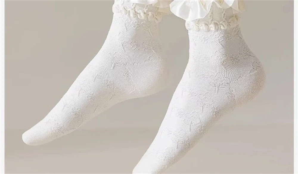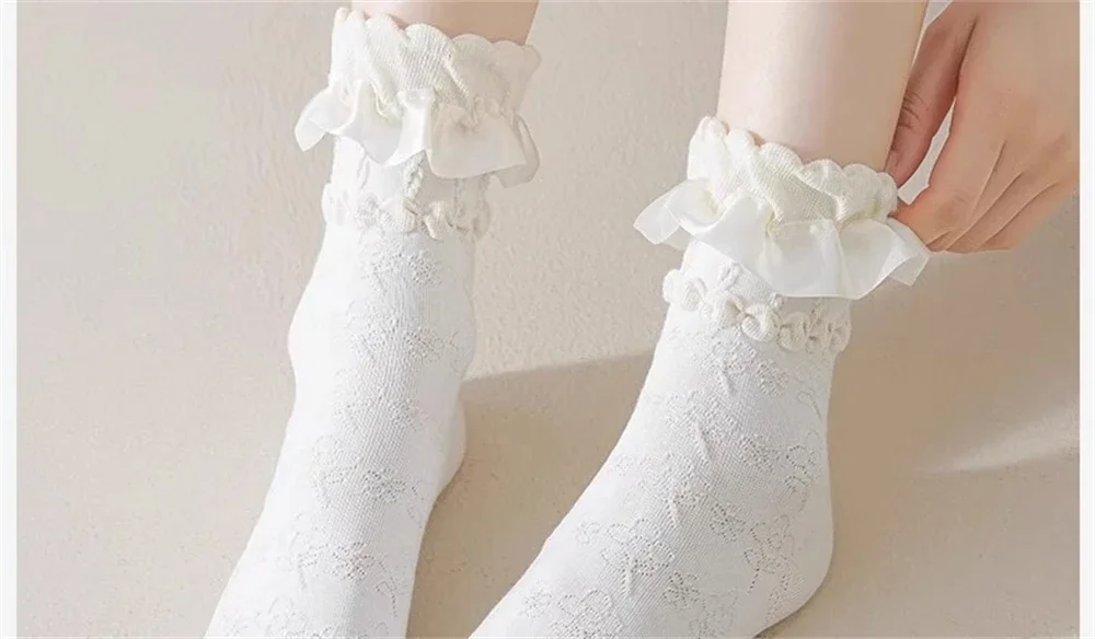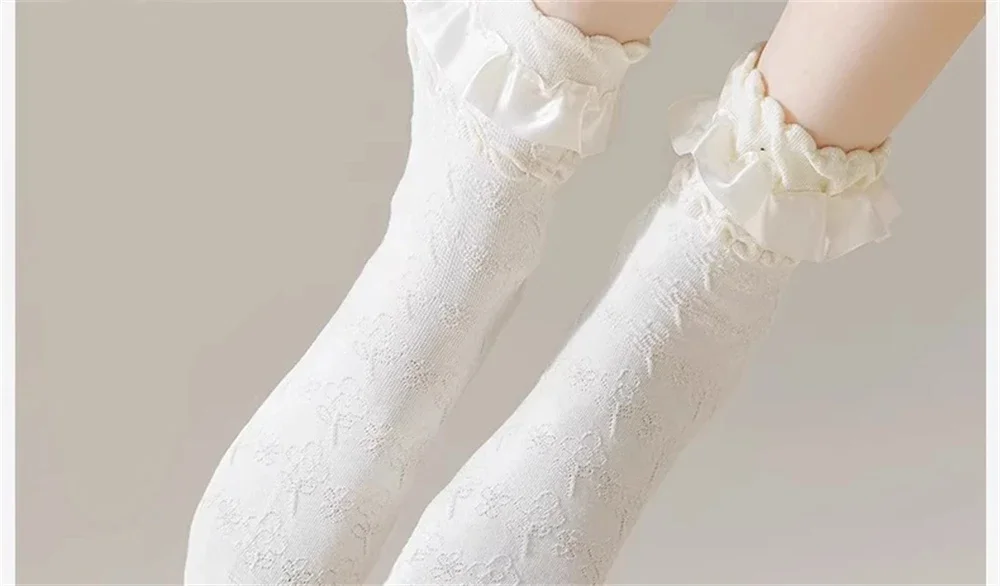 1 par de calcetines de encaje blanco Lolita para mujer, calcetines finos transpirables de tubo medio, estilo japonés JK, calcetines de princesa, regalo para niña