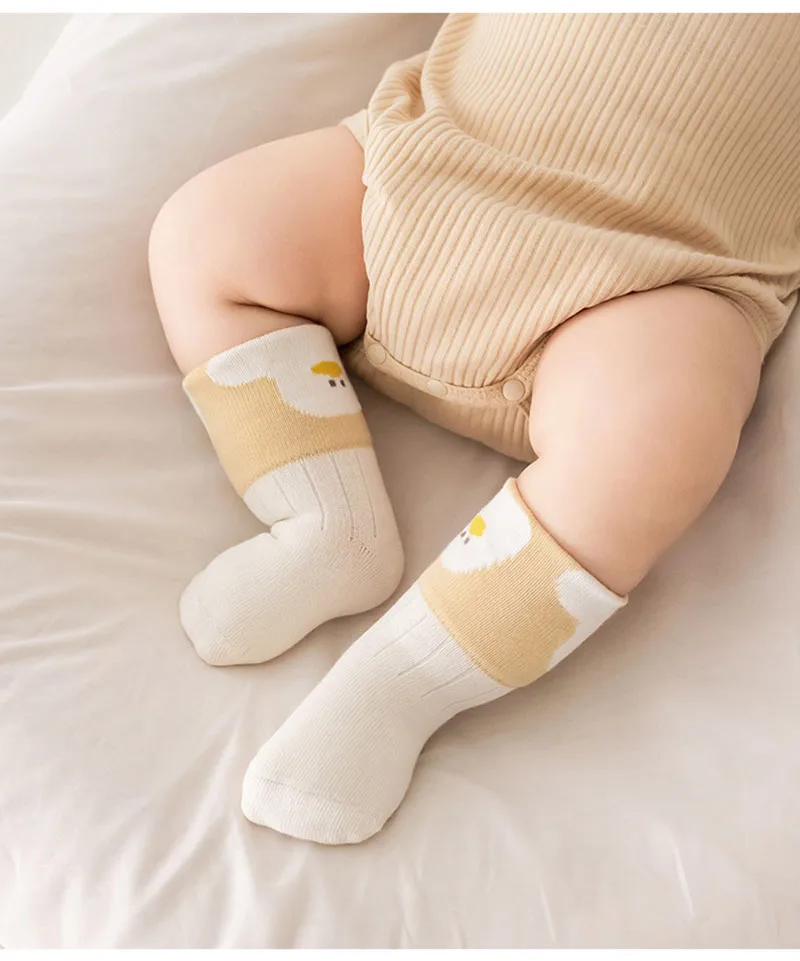 3 pares de calcetines hasta la rodilla de primavera para bebés de 0 a 3T, calcetines de tubo con estampado de animales de dibujos animados para niños pequeños, calcetines de bloque de Color para niñas