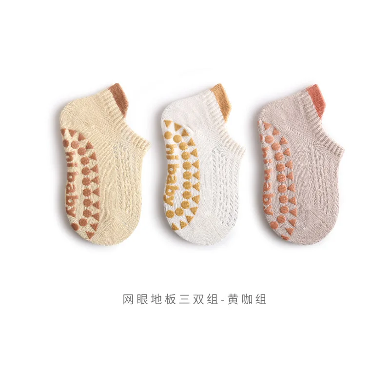3 pares de calcetines de verano para bebé simplicidad Color sólido silicona antideslizante calcetín de suelo malla transpirable tobillo fino calcetín interior para niños pequeños
