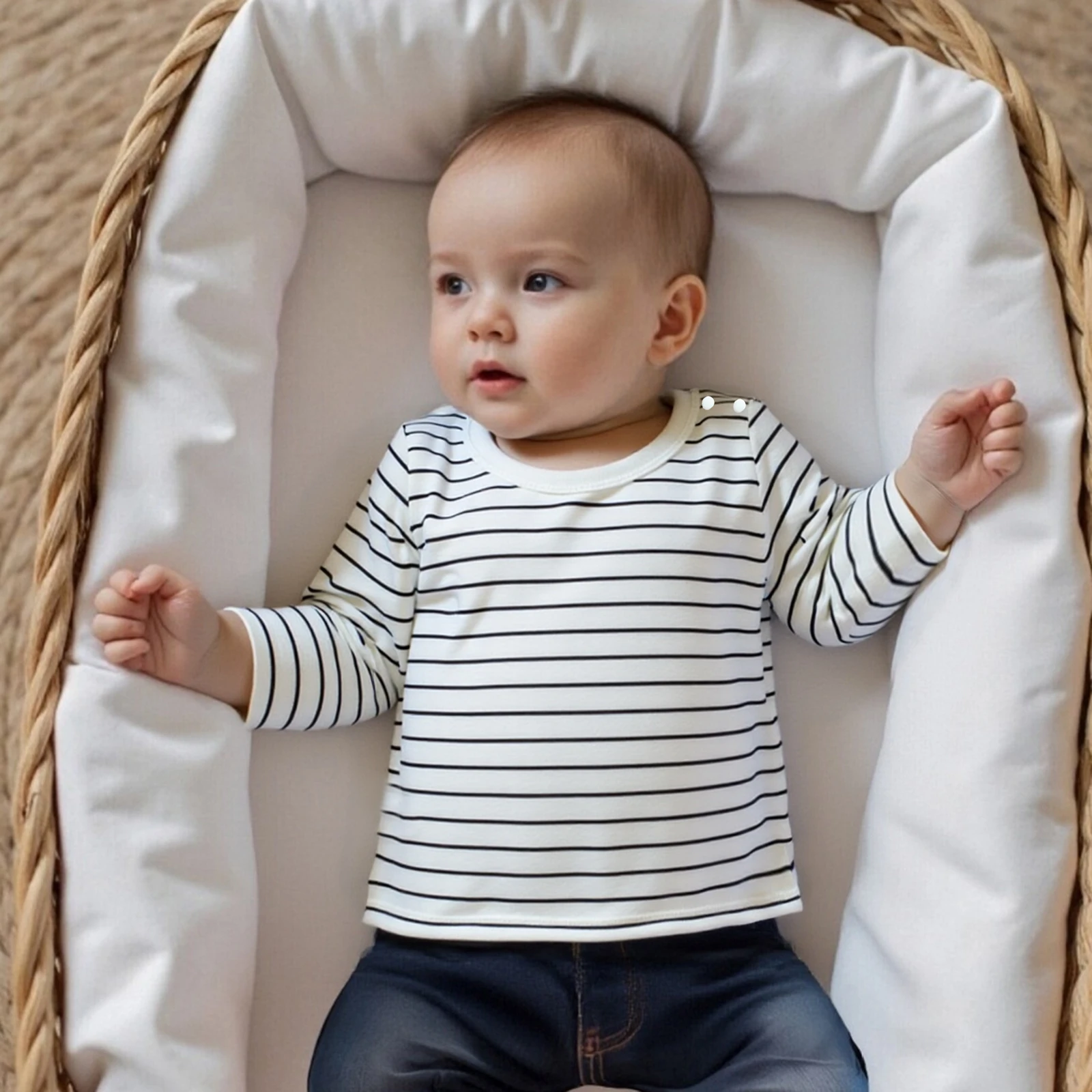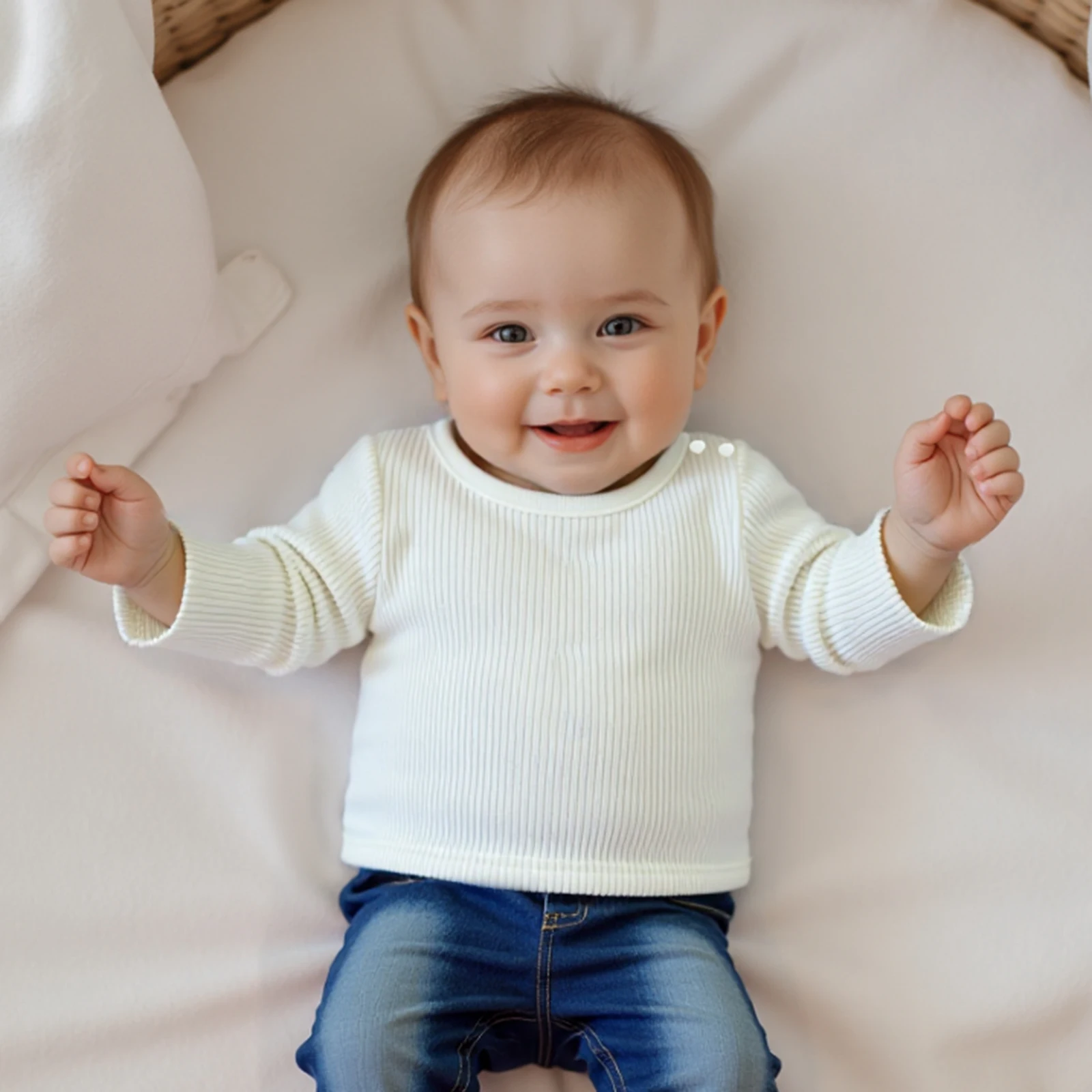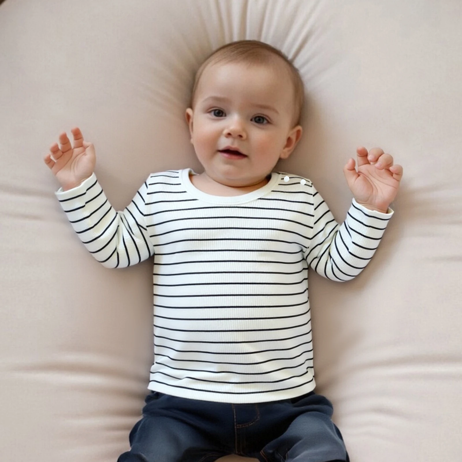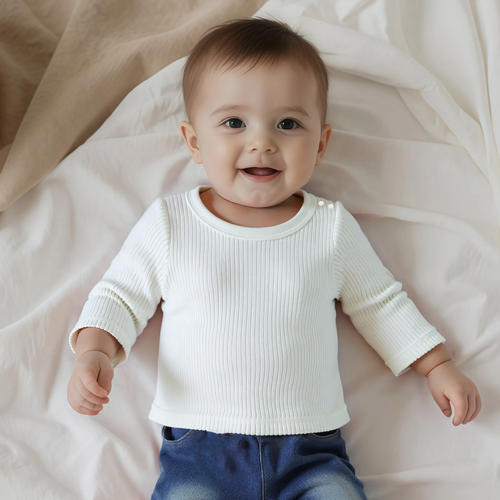 Comprar 3 piezas bebé niña niño tops otoño cuello redondo manga larga color sólido/camisas de capa base acanalada a rayas