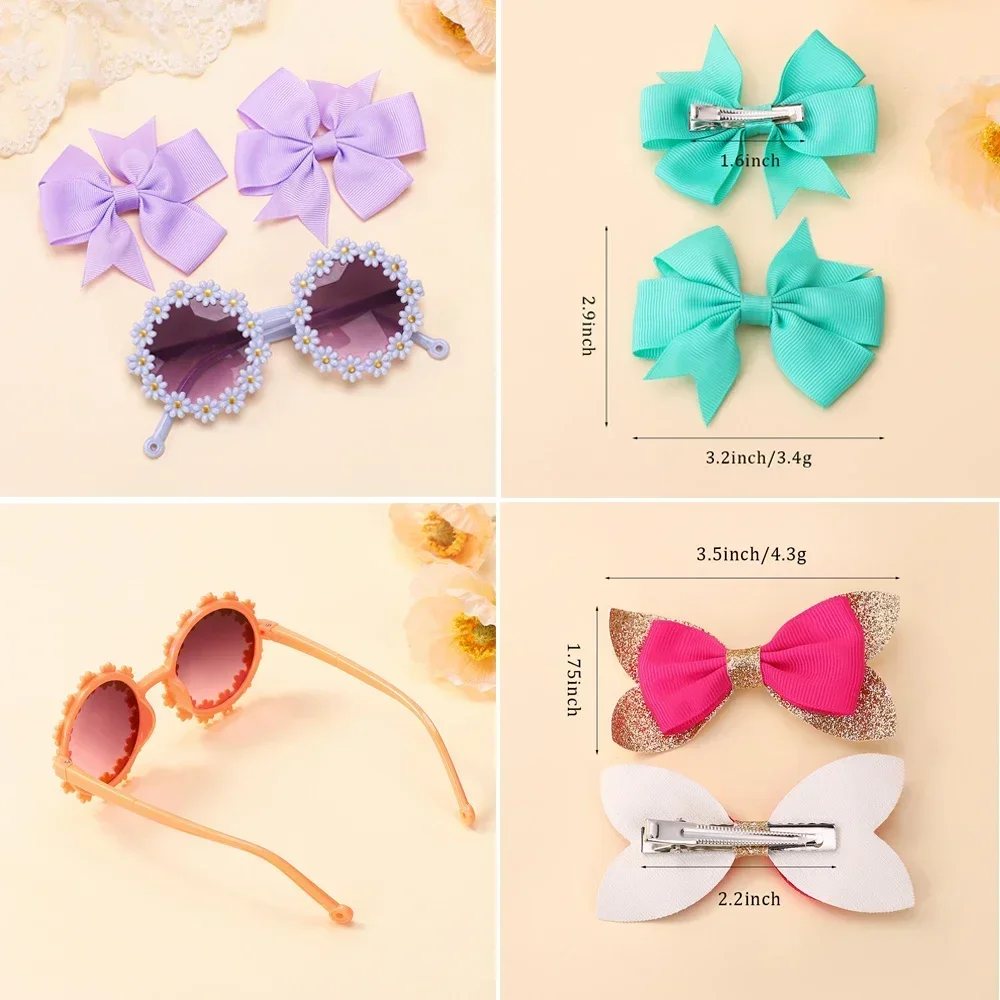 3 uds/tarjeta de pinzas para el pelo con lazo y gafas de sol de Margarita para niña, sombreros de fiesta de viaje, lazos para niños, pasador, accesorios para el cabello