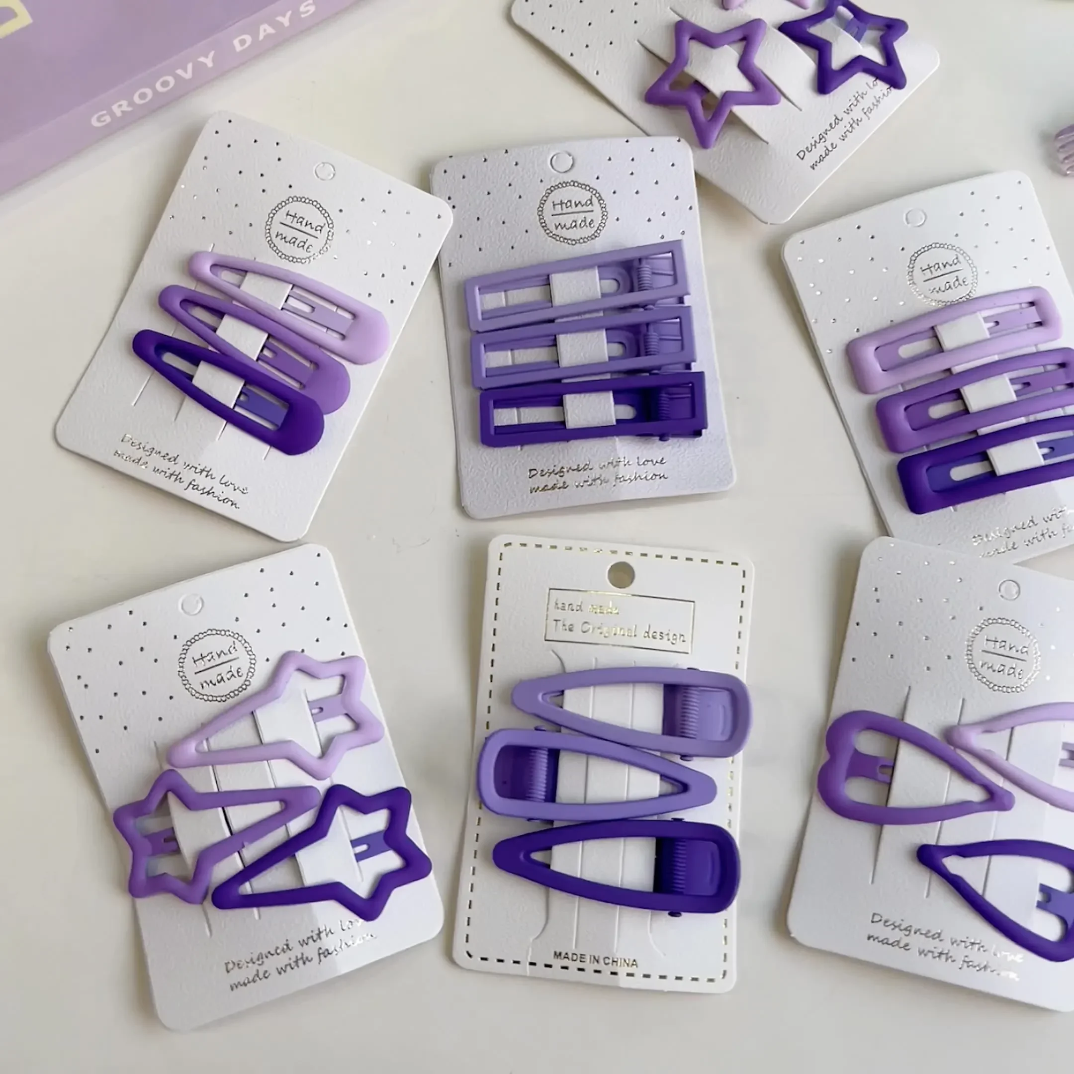 3 unids/set de Clips BB morados para niñas, pinzas para el cabello con forma de estrella básica dulce y bonita para niñas, sombreros para niños, tocado, accesorios para el cabello - imagen 5