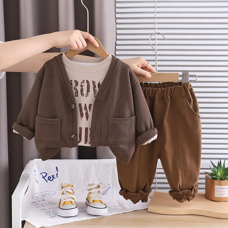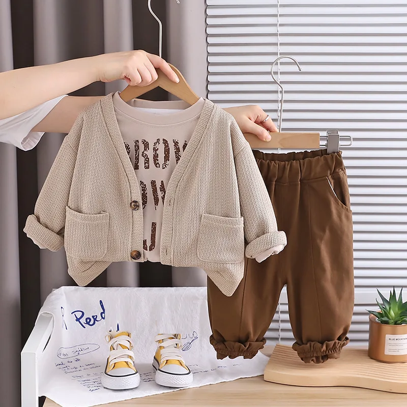 Comprar 3 unids/set conjunto de ropa para niños suéter + camiseta + pantalones ropa de moda de otoño para niños