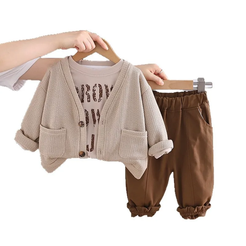 Comprar 3 unids/set conjunto de ropa para niños suéter + camiseta + pantalones ropa de moda de otoño para niños