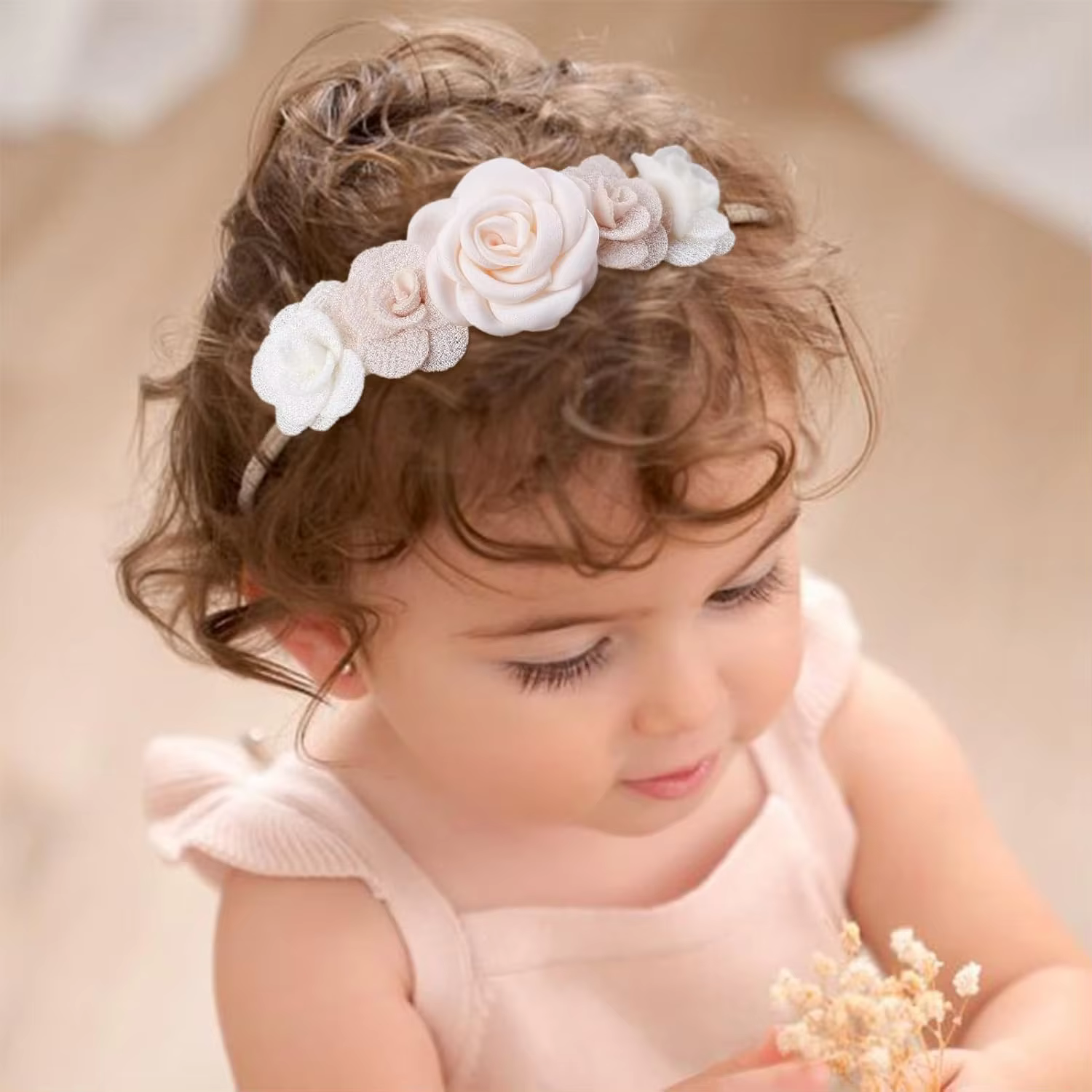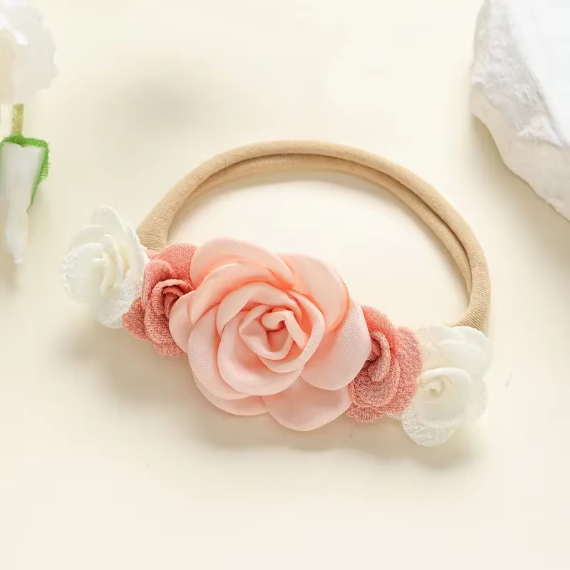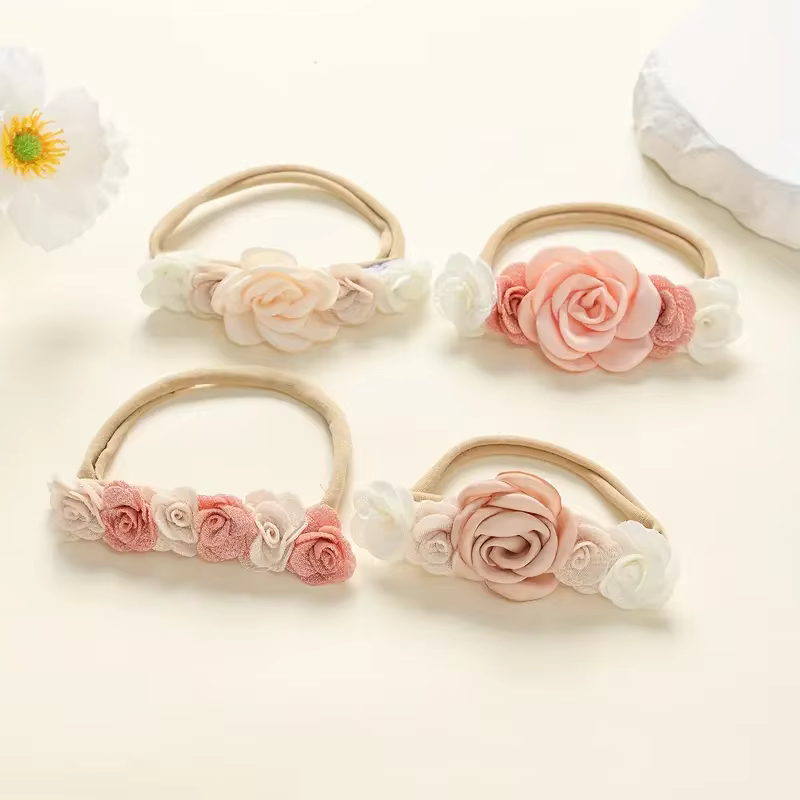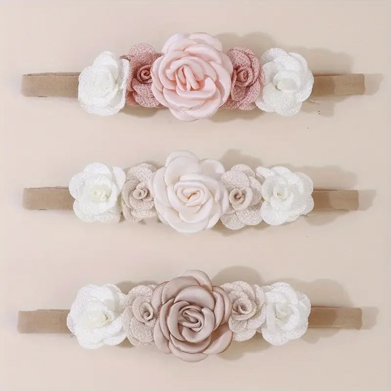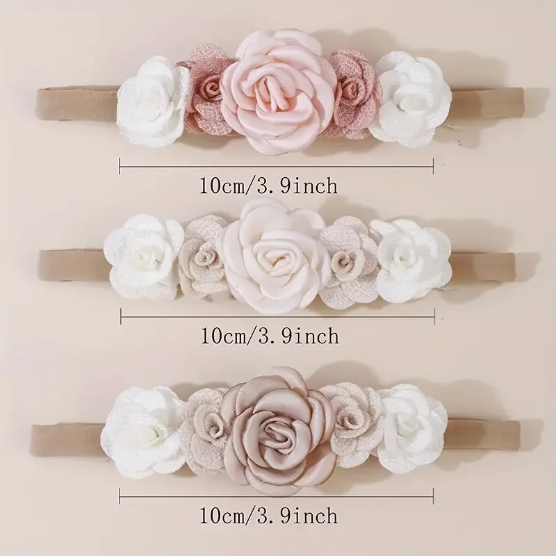 Comprar 3 unids/set diademas de flores para niña, diademas florales de nailon elástico súper suave, accesorios elásticos para el cabello para recién nacidos y niños pequeños