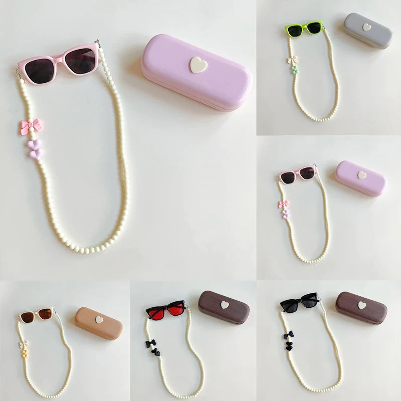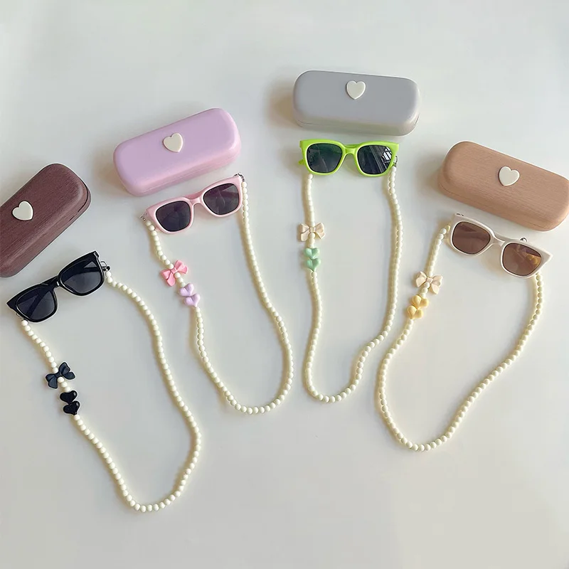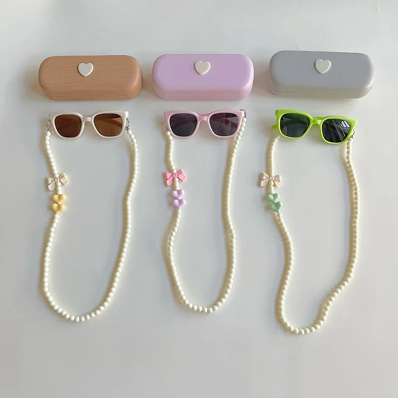 3 unids/set de gafas de sol para niños con caja, cadena para el ojo, gafas de sol para niños y niñas, gafas Uv de moda, accesorios para primavera y verano