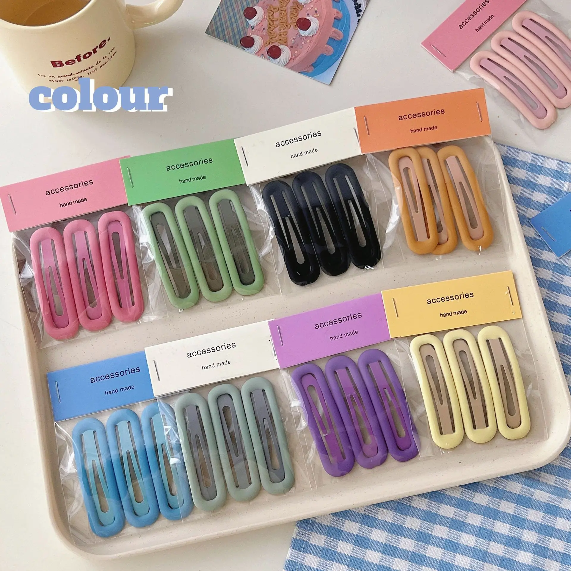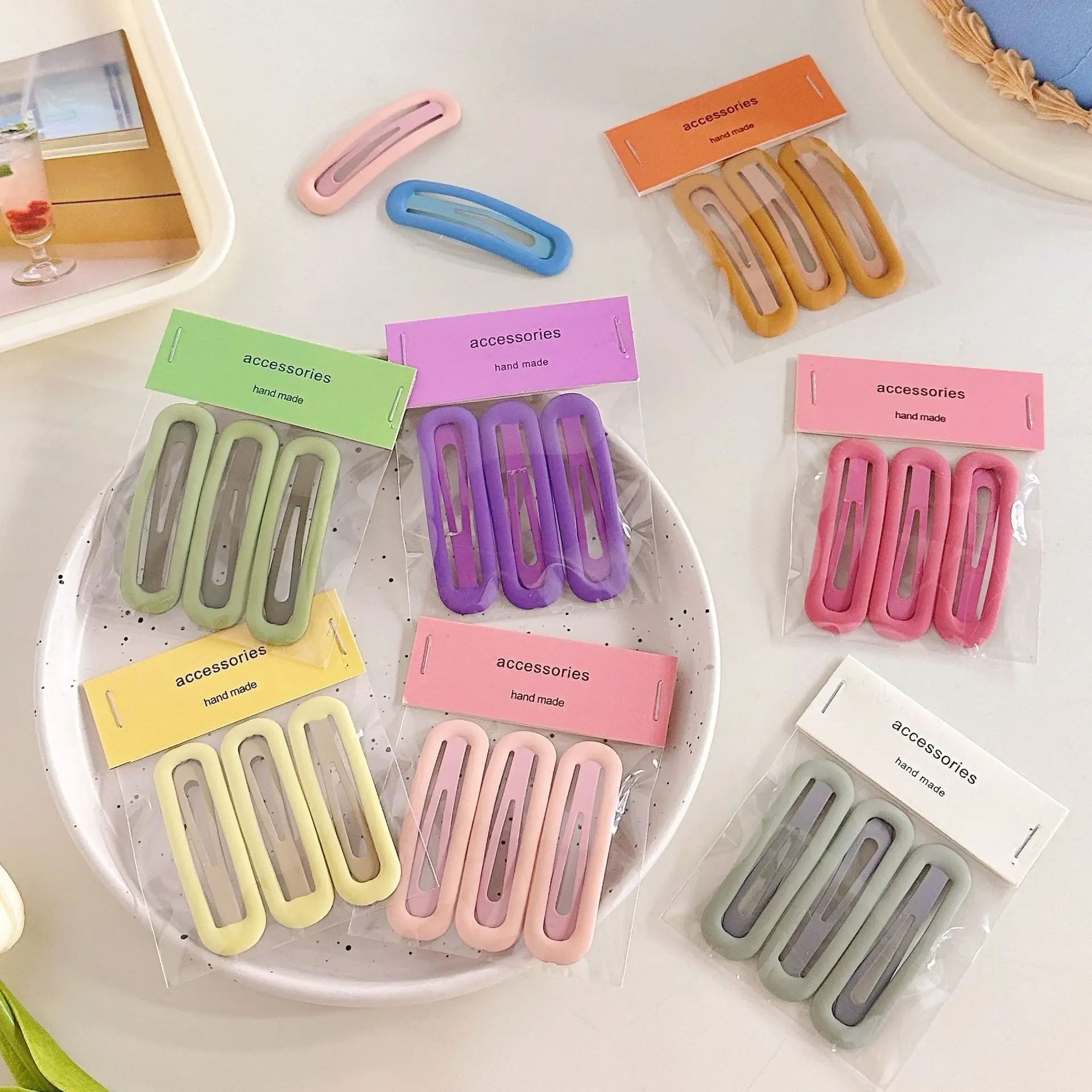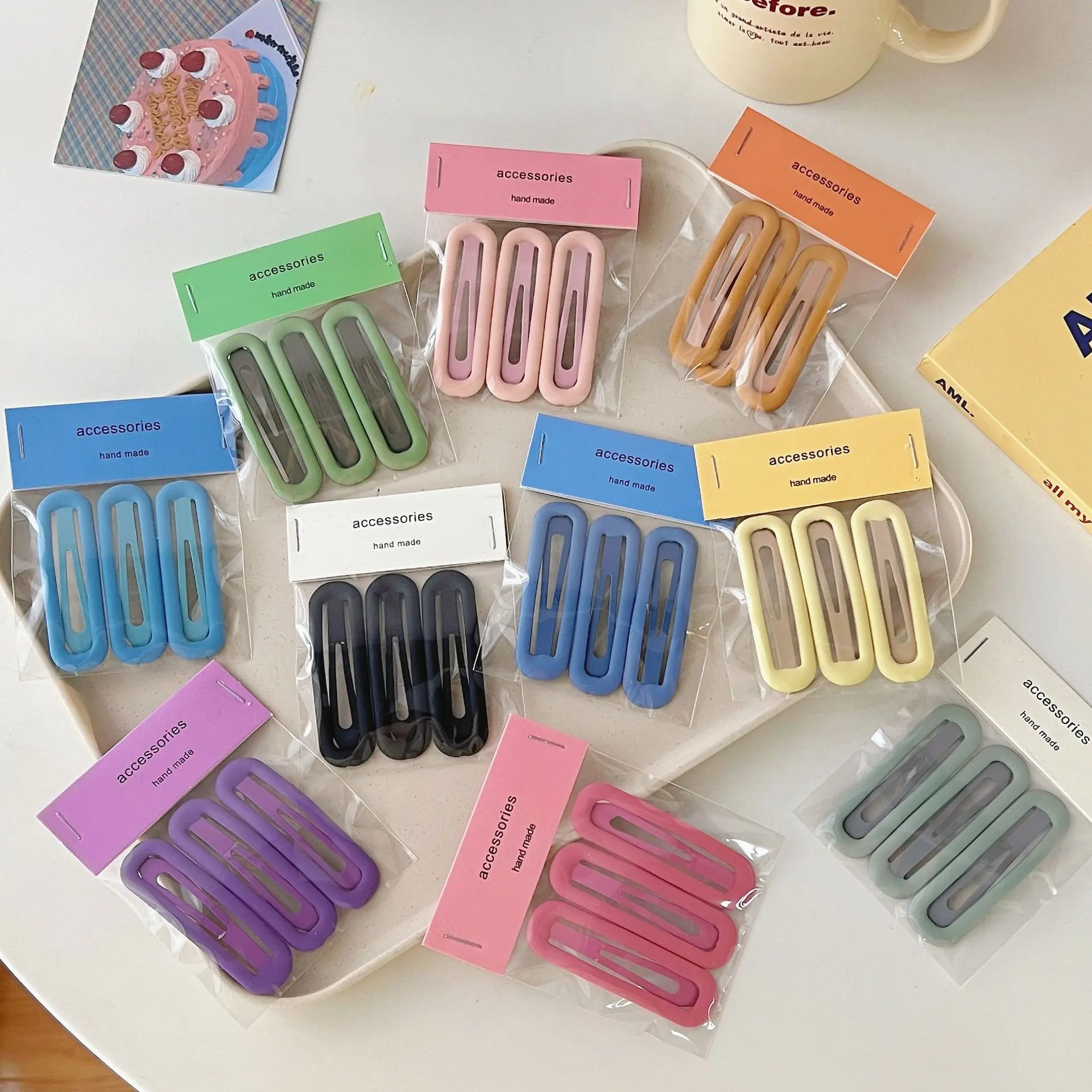 3 unids/set de horquillas ovaladas grandes y coloridas, pasador de Metal BB, pinzas para el cabello para niños, niñas, alfileres a presión, herramientas de peinado para mujeres