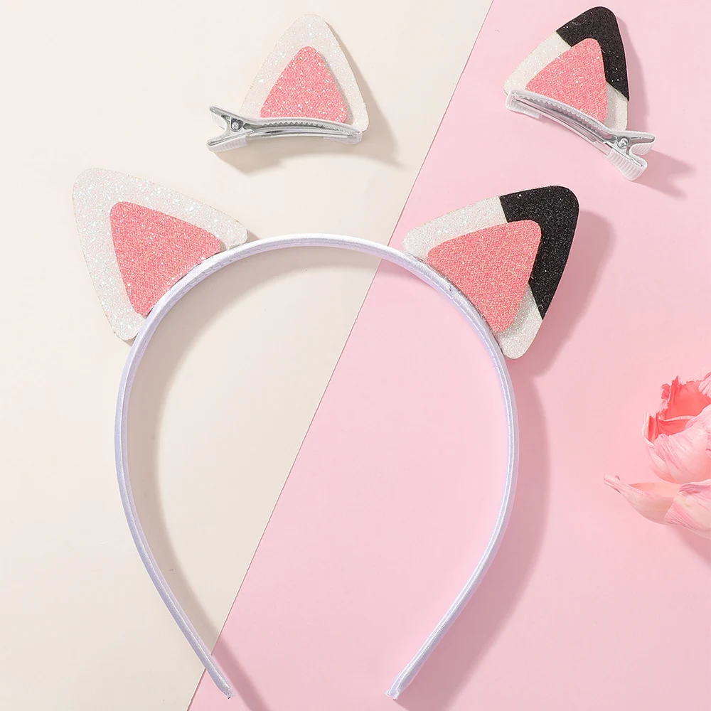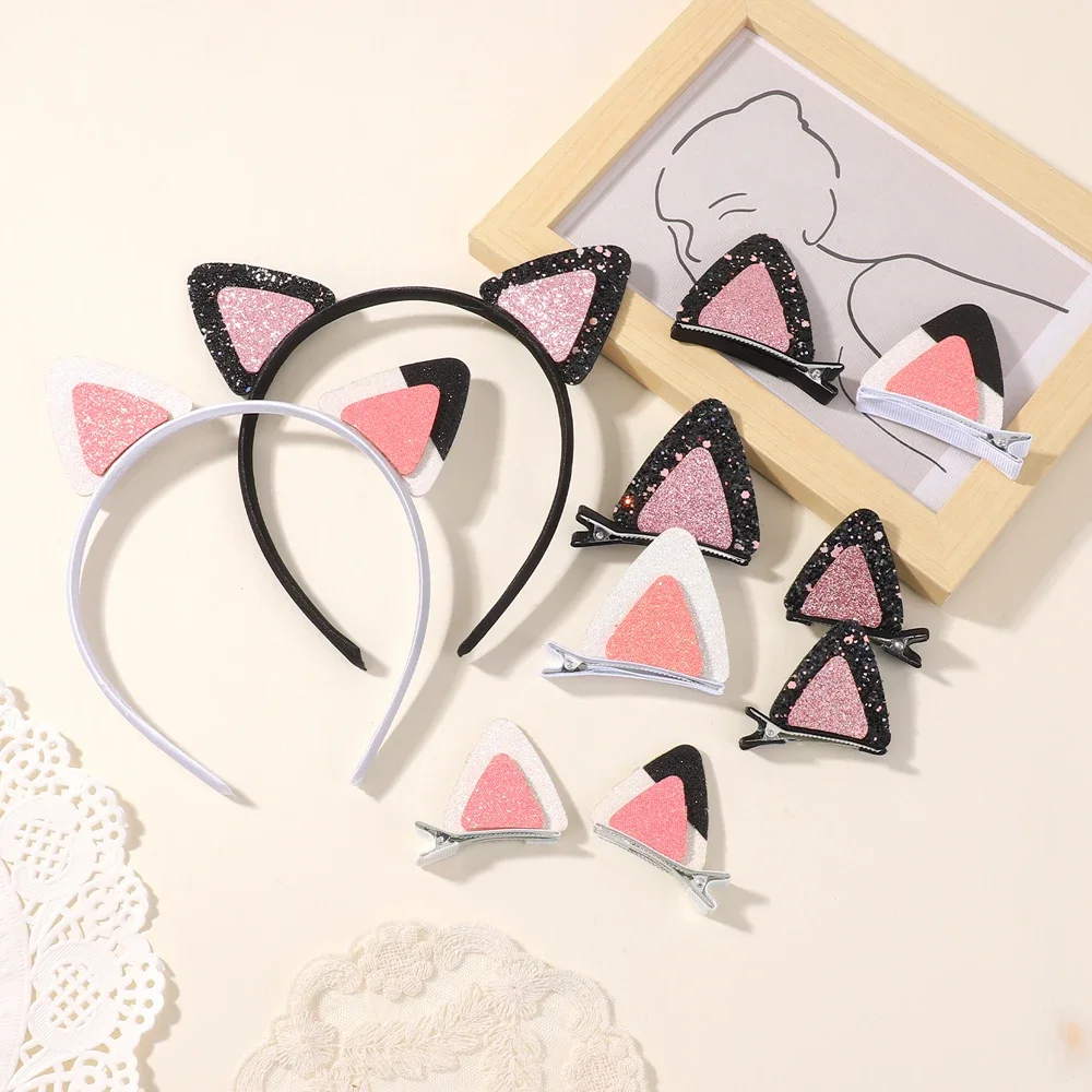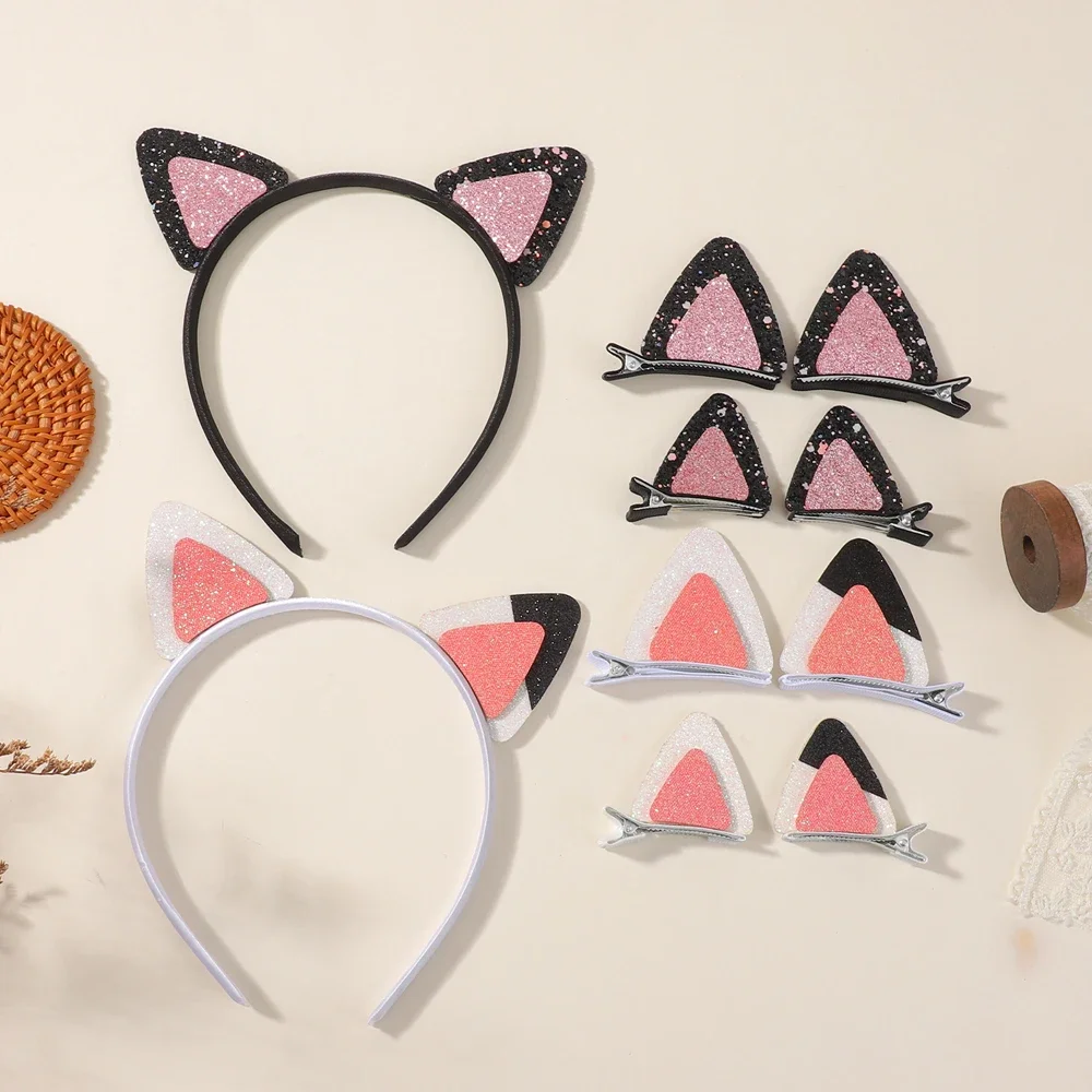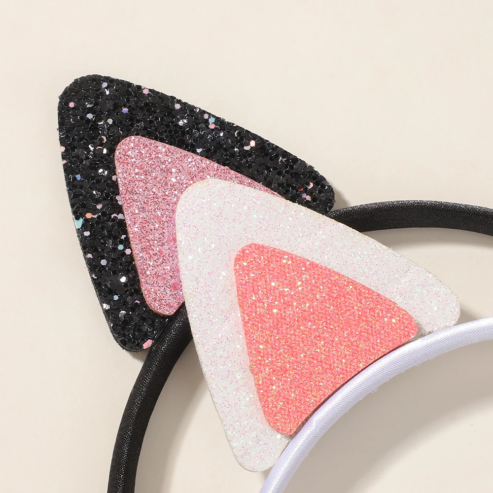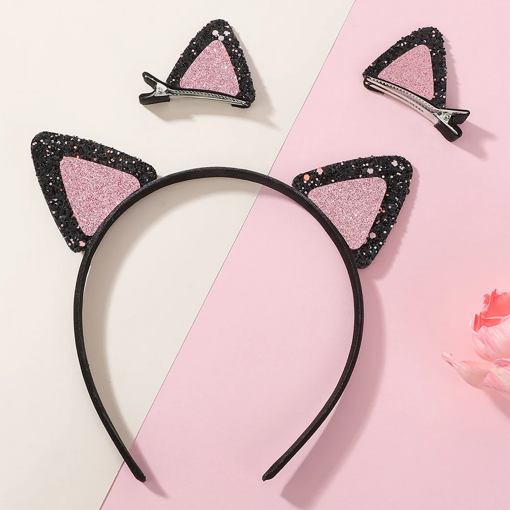 Comprar 3 unids/set lindo lentejuelas Rosa negro diadema con orejas de gato para niñas Anime Clip de pelo tocado de dibujos animados Cosplay accesorios para el cabello regalos