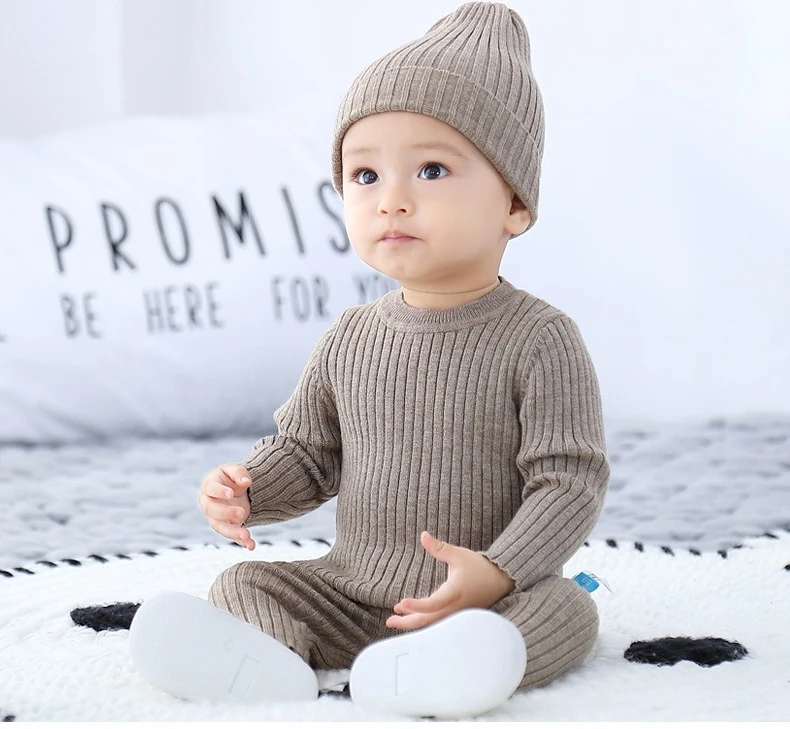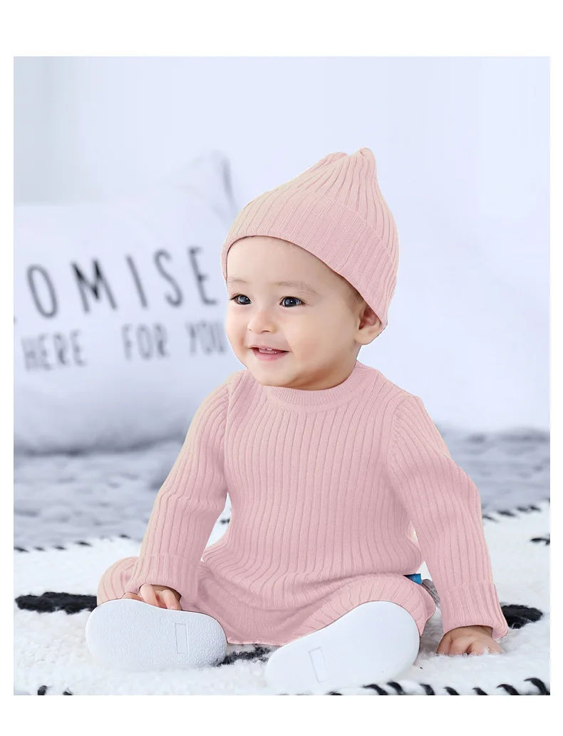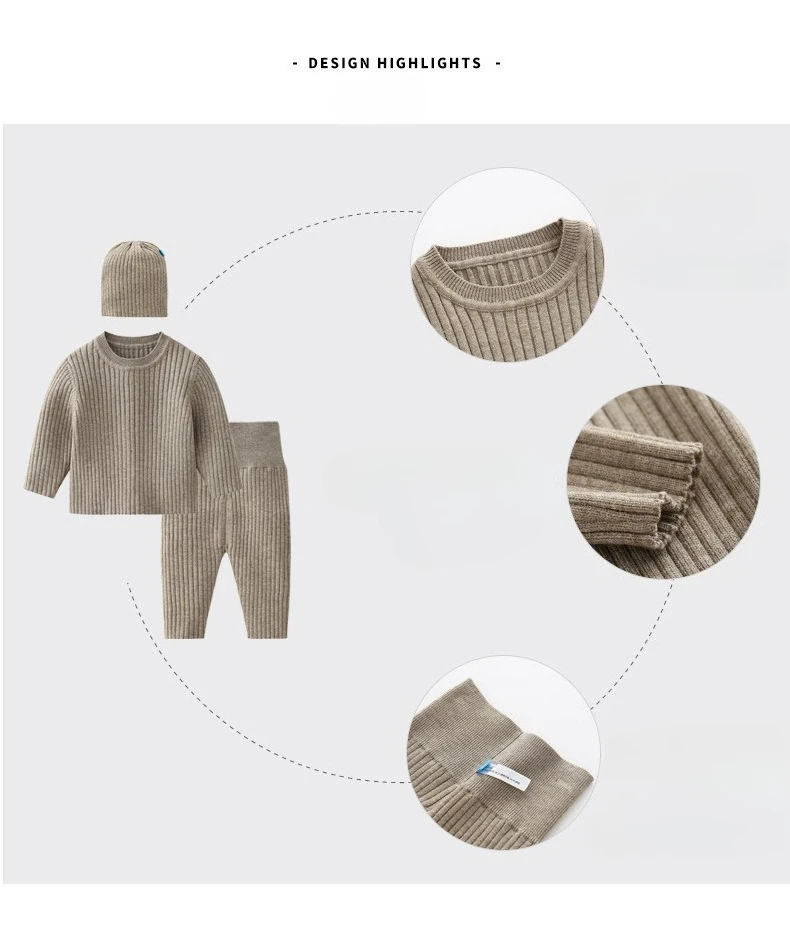3 unids/set de prendas de punto térmicas para bebé, suéter cálido de Color sólido, pantalones, sombrero, traje de Otoño Invierno para accesorios de fotografía para recién nacidos