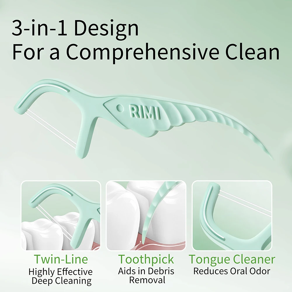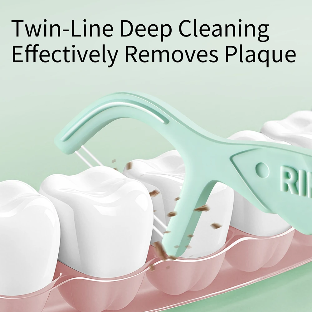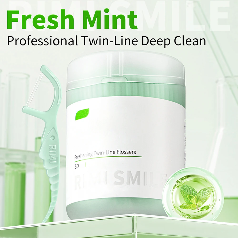 30/50/200PCS Palos de menta de doble hilo - Refresca el aliento y limpia la boca - Diseño de doble hilo que dobla la limpieza