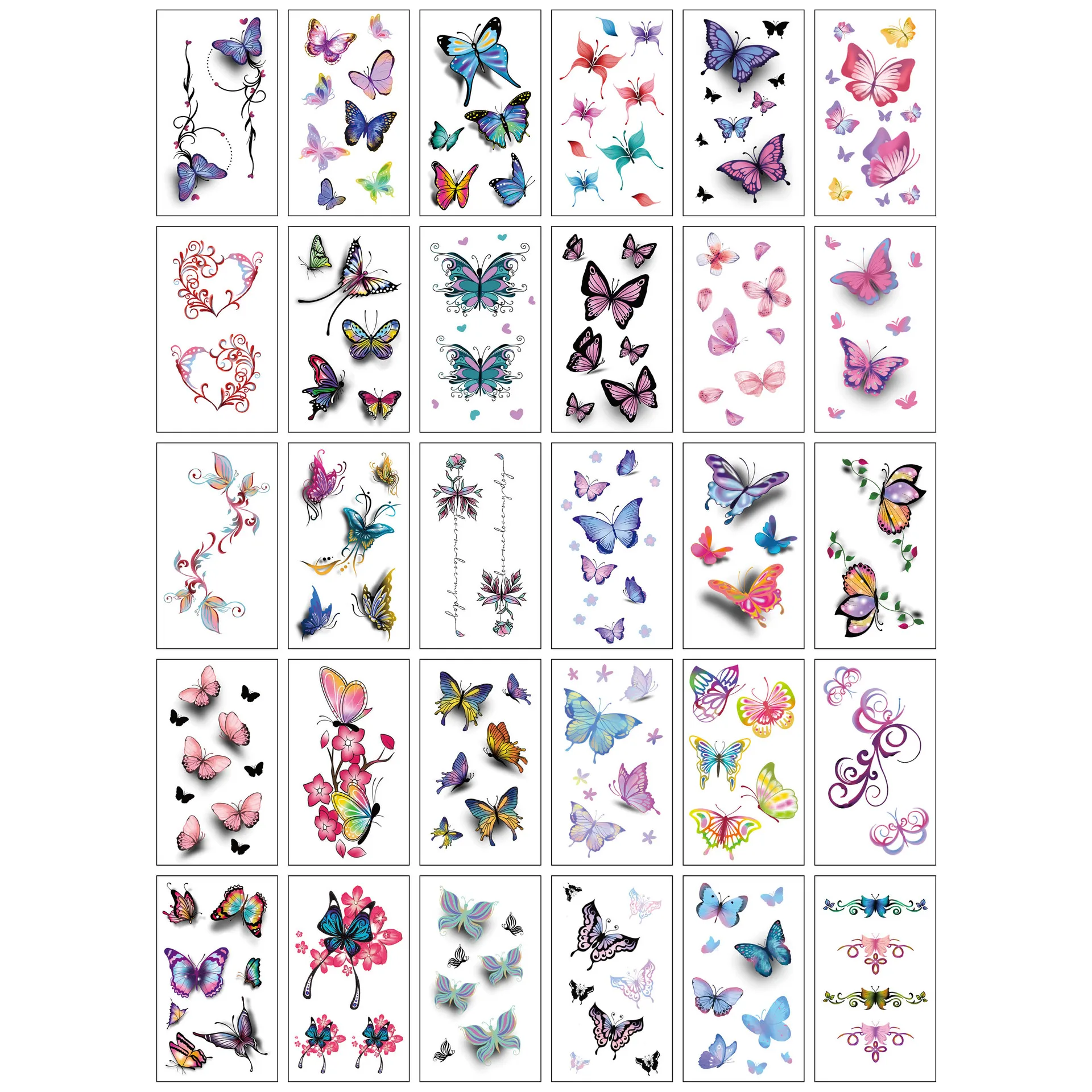 Comprar 30 Uds. De pegatinas de tatuaje de flores blancas y negras, pegatinas de tatuaje temporal pequeñas y frescas de dibujos animados de mariposa y rosa, cubierta impermeable para cicatriz.