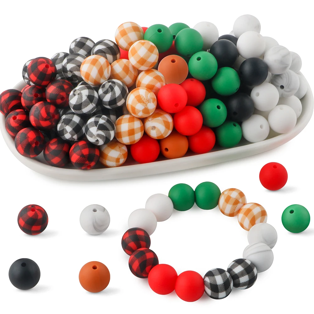30Pcs/Lot 15MM Silicone Beads Round Loose Mix Print Beads For Jewelry Making DIY KeyChain Pen Bracelet Necklace Accessories