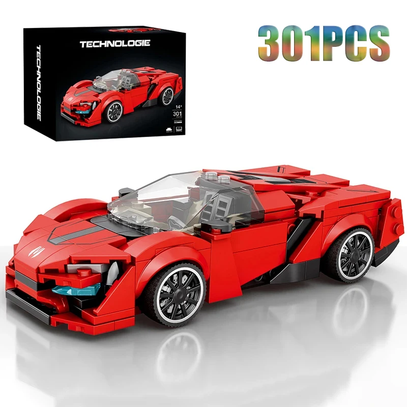 Comprar 301 Uds. Bloques de construcción de automóviles deportivos rojos, vehículo urbano creativo, modelo de coche clásico, ladrillos, juguetes de exhibición de escritorio para niños, regalos de vacaciones