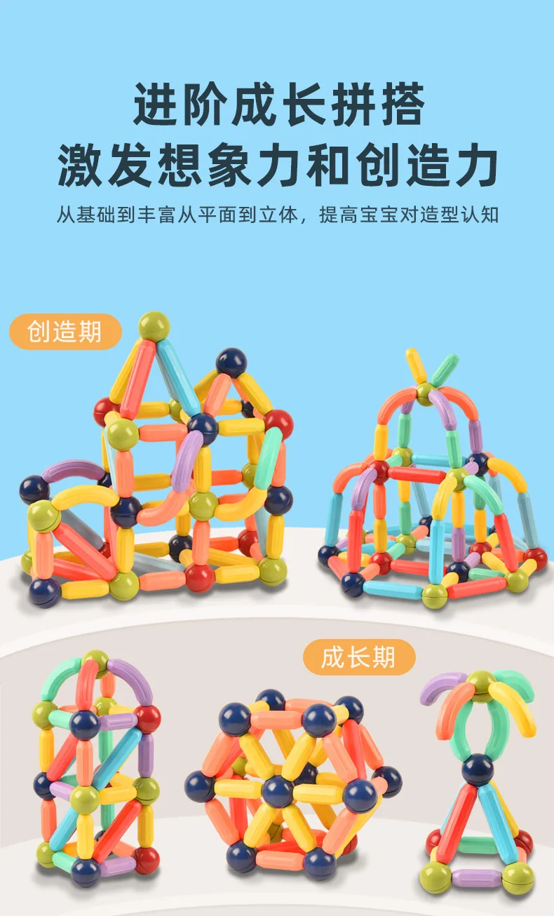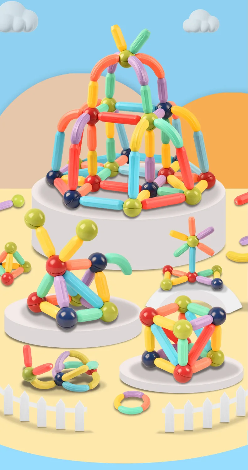 36-46 Uds. Juguete de bloques de construcción magnéticos grandes, juego de construcción magnética, palos de bolas magnéticas, juegos de varillas, juguetes educativos Montessori